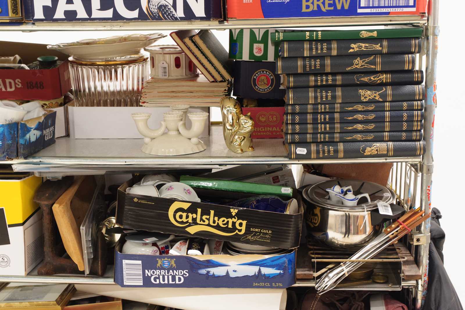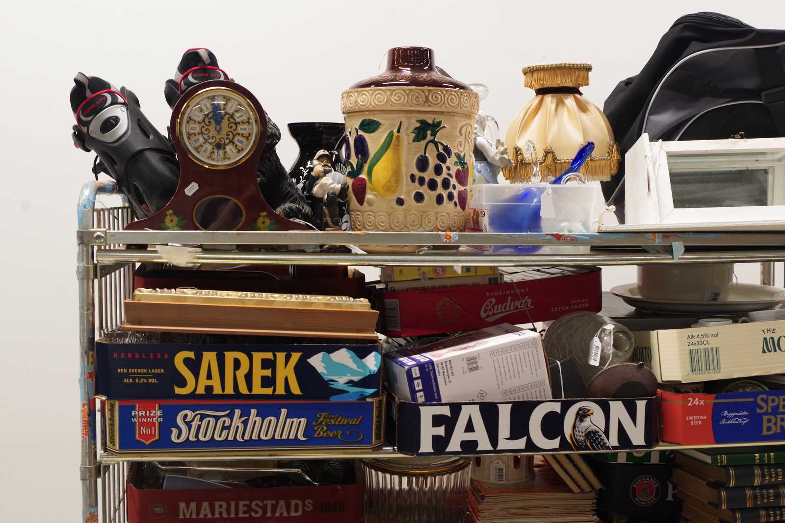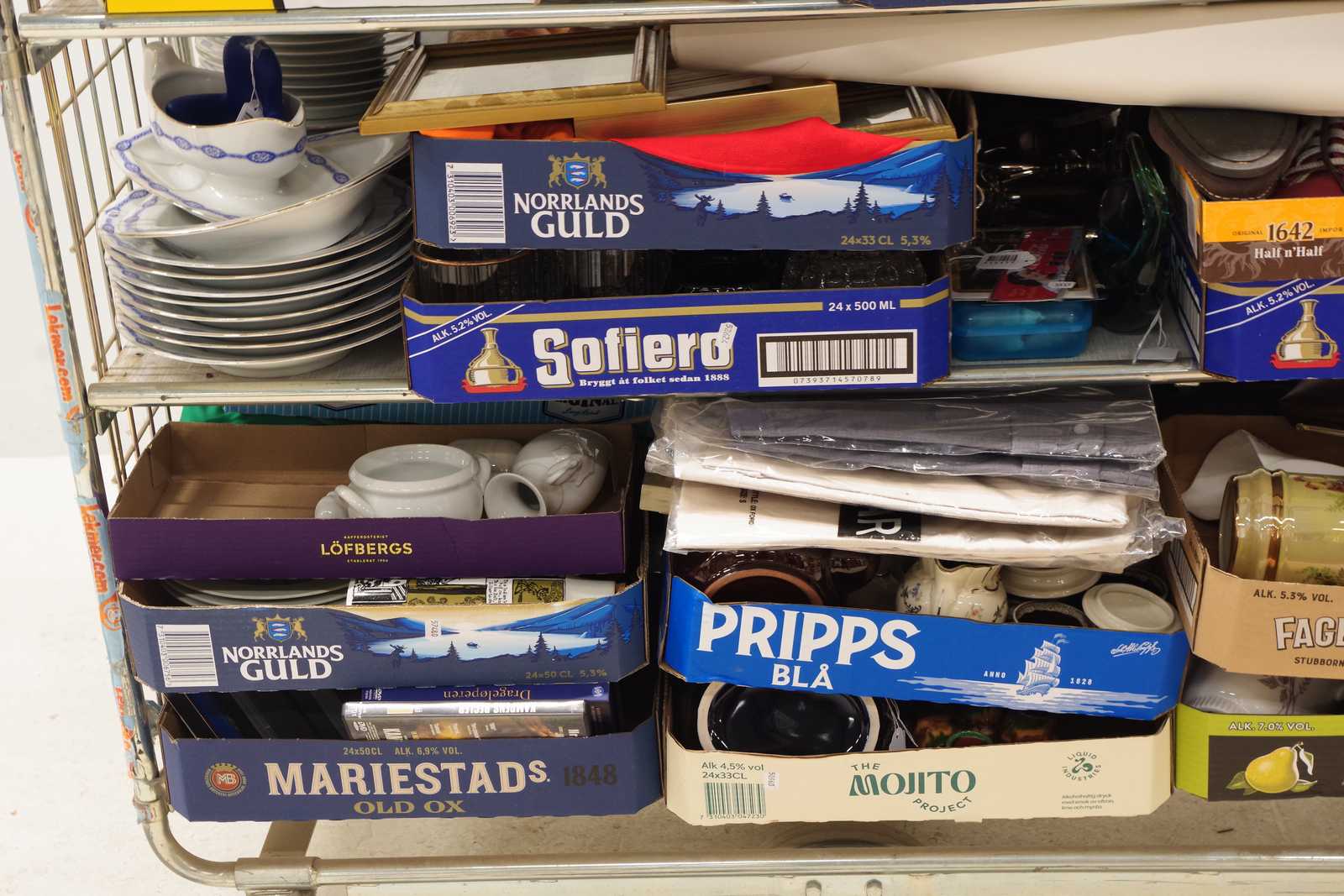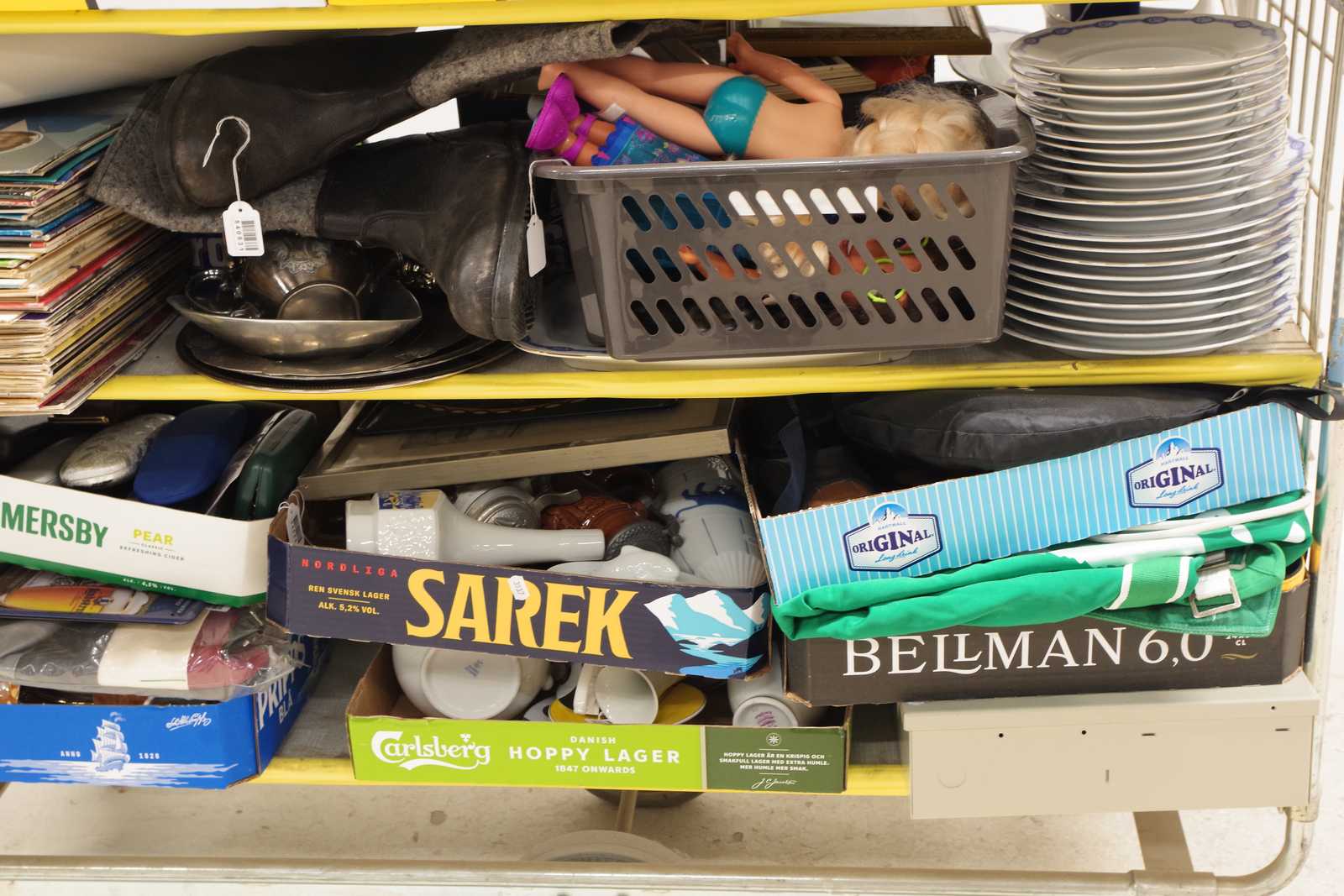 Parti OSÅLT GODS från tidigare auktioner. Säljes till förmån för barncancerfonden. Obs! Köparen måste ta hela partiet. (skador kan förekomma, vagnen ingår ej)