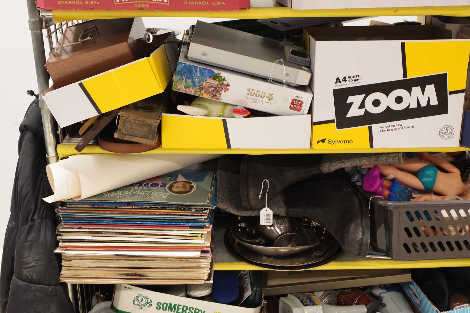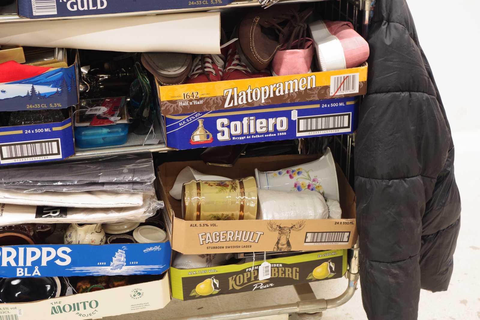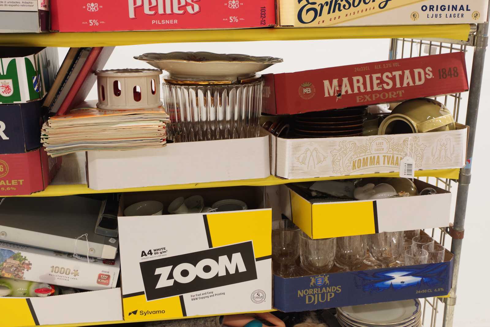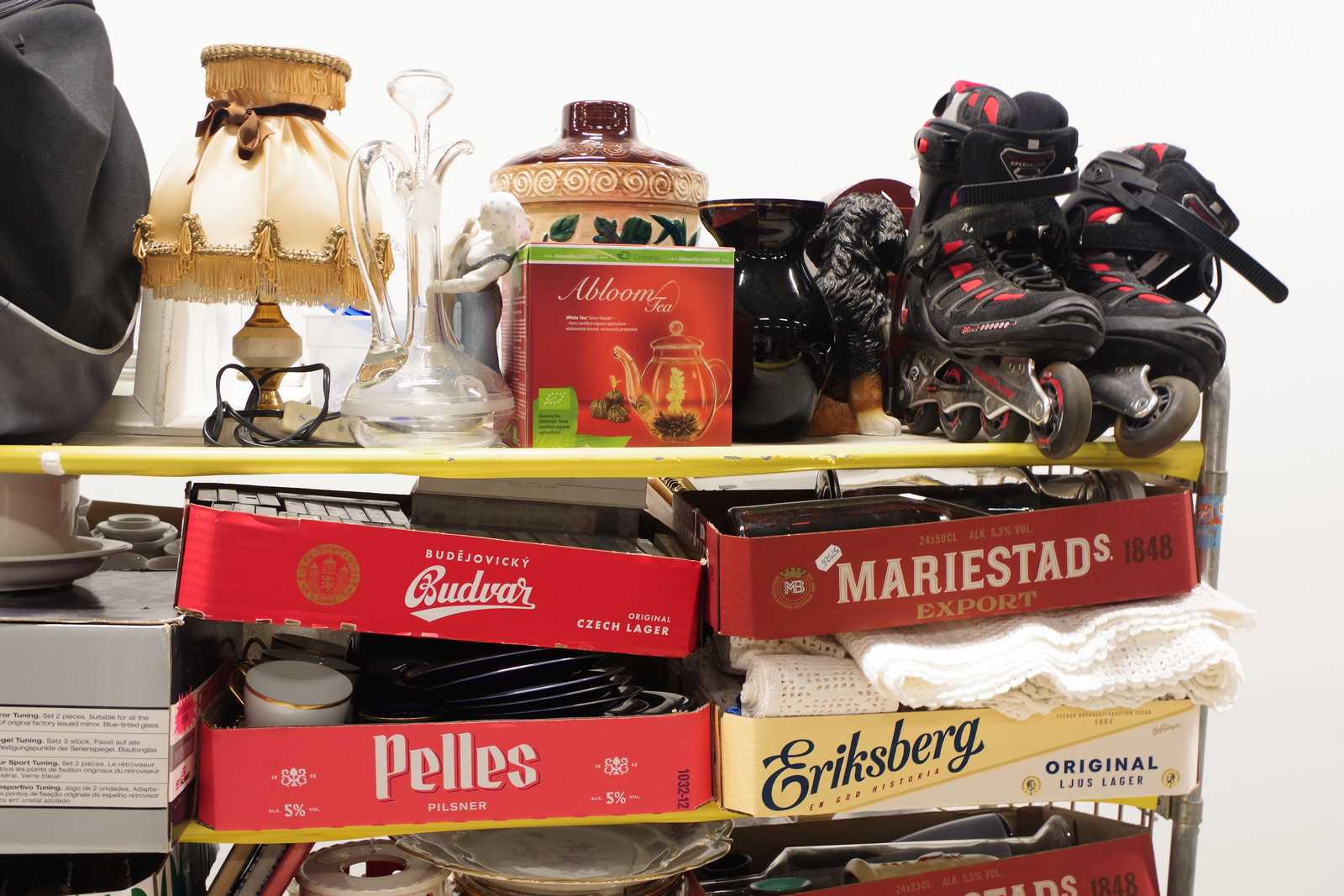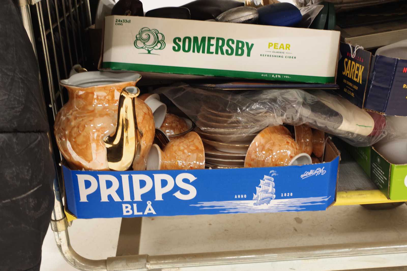 Parti OSÅLT GODS från tidigare auktioner. Säljes till förmån för barncancerfonden. Obs! Köparen måste ta hela partiet. (skador kan förekomma, vagnen ingår ej)