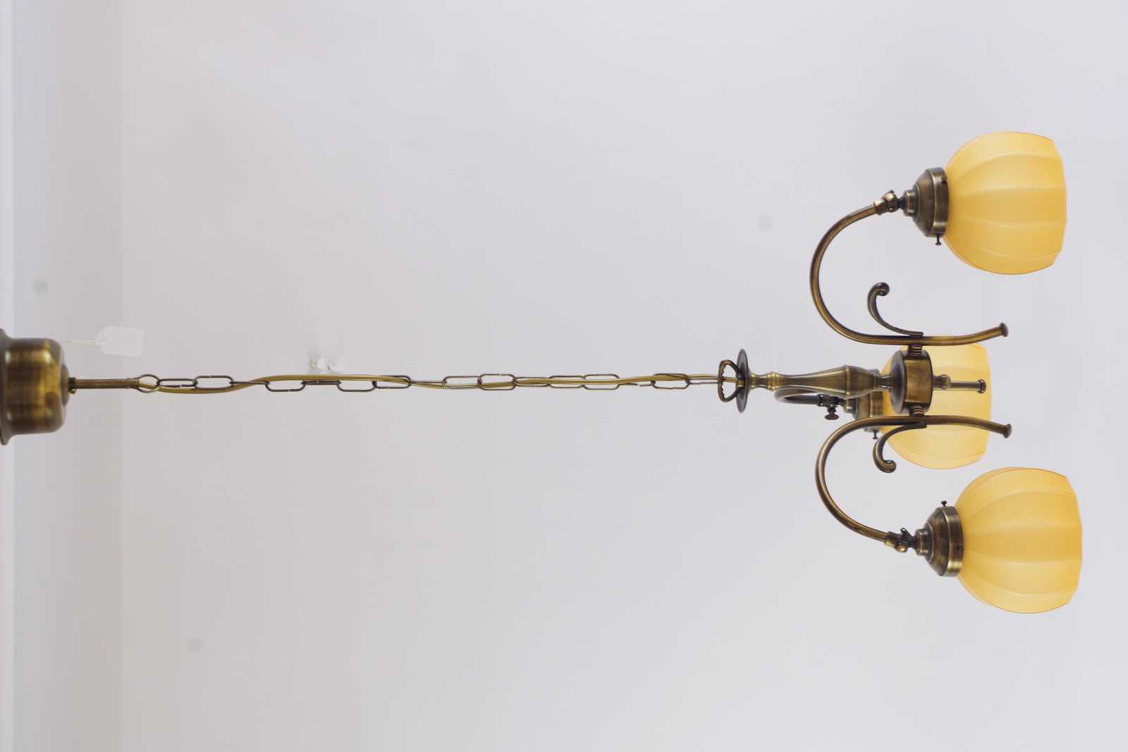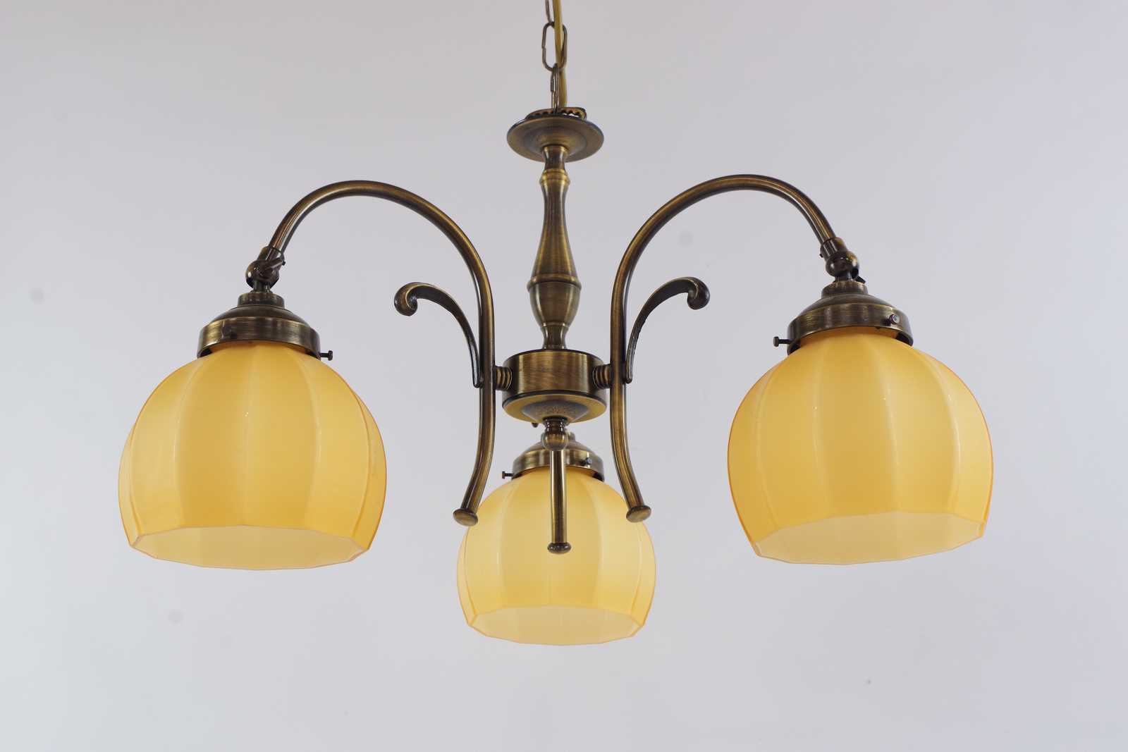 Bilder TAKLAMPA 3 armar, Lyktan, stomme i metall & kupor i glas. D:45cm H:30cm exklusive upphängnings kedja