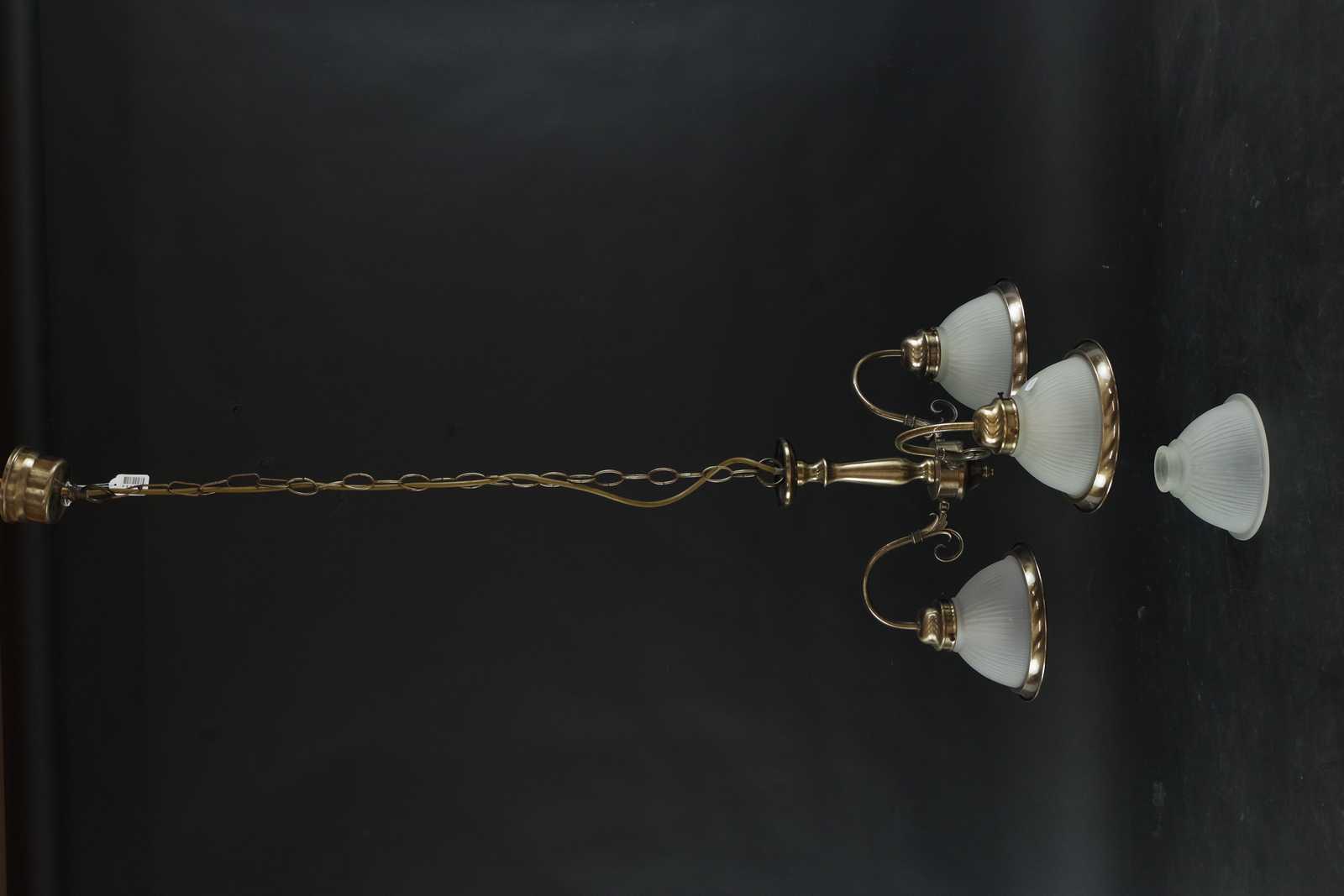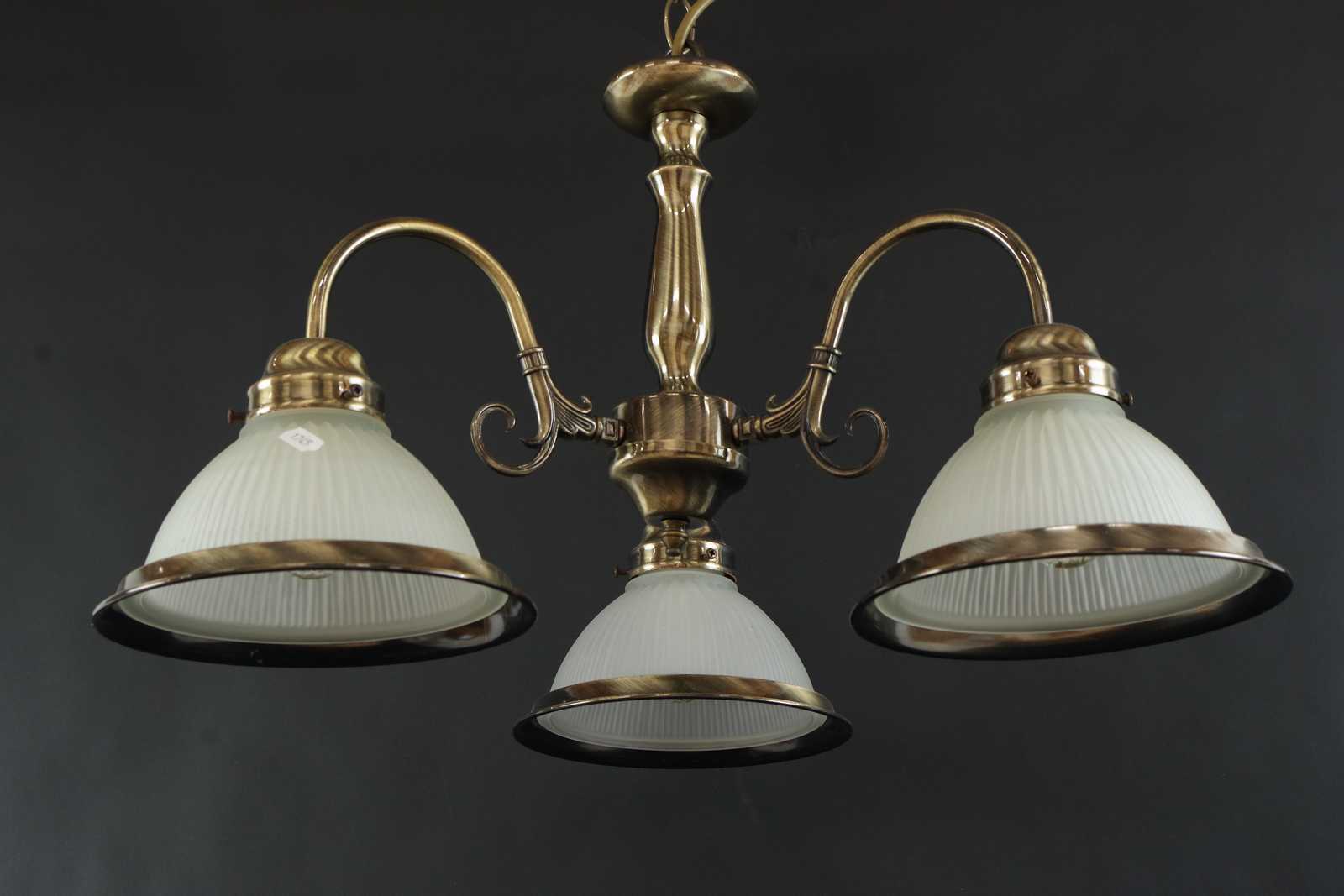 Bilder TAKLAMPA 3 armar, Cottex, stomme i metall & kupor i glas. D:50cm H:32cm exklusive upphängnings kedja