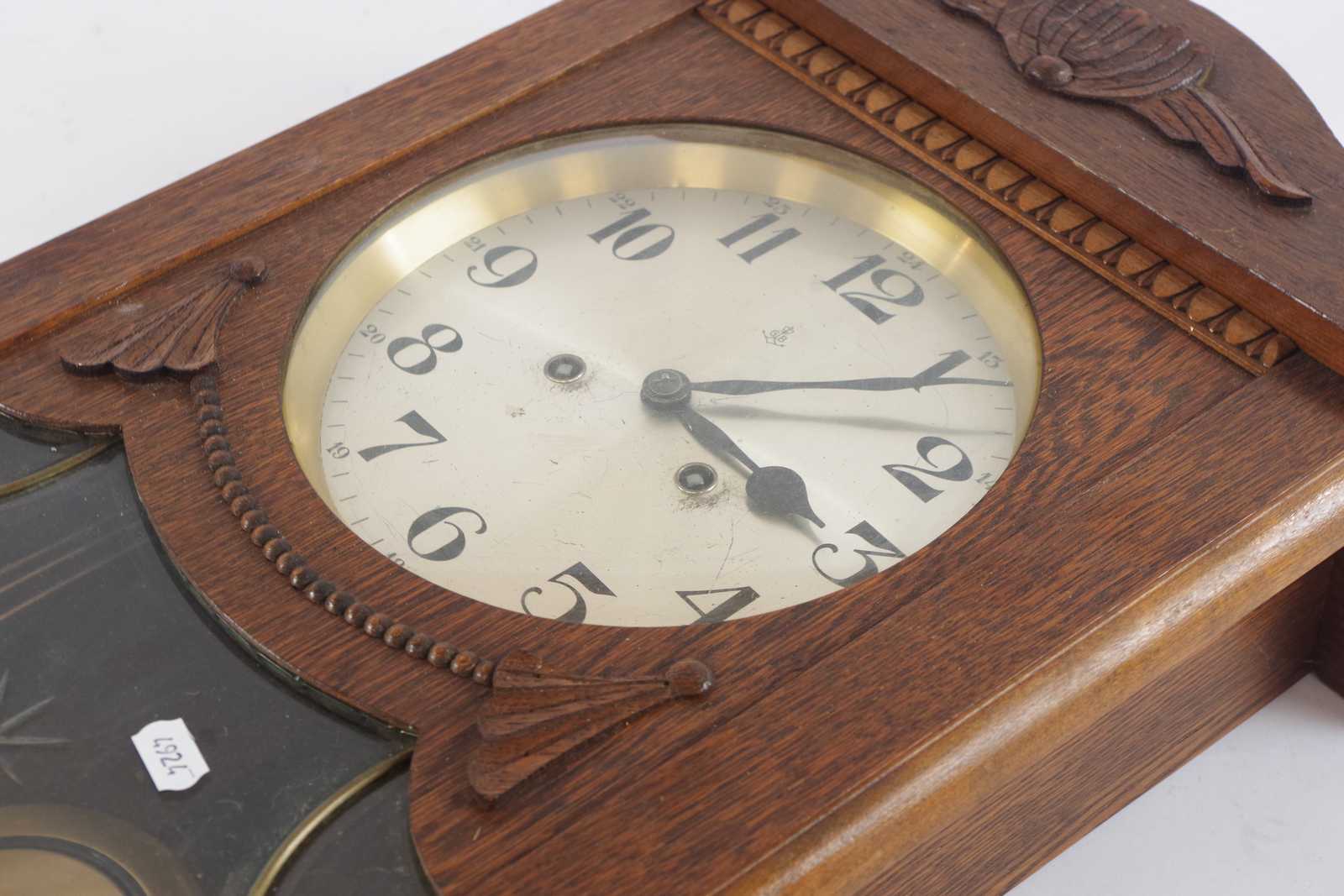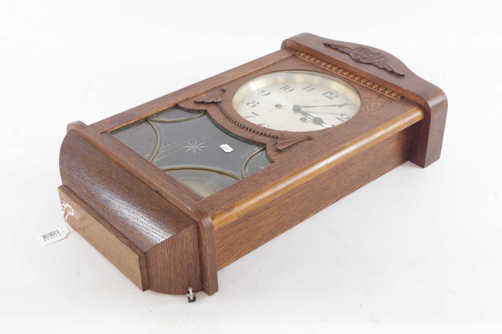 VÄGGKLOCKA i ek, 1900 talets första hälft. 33x58cm