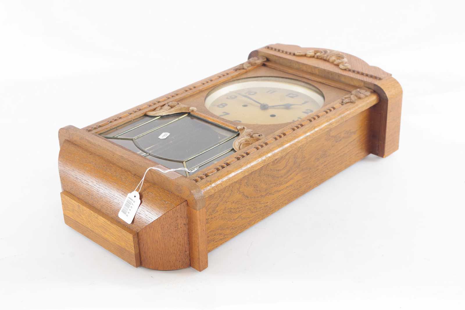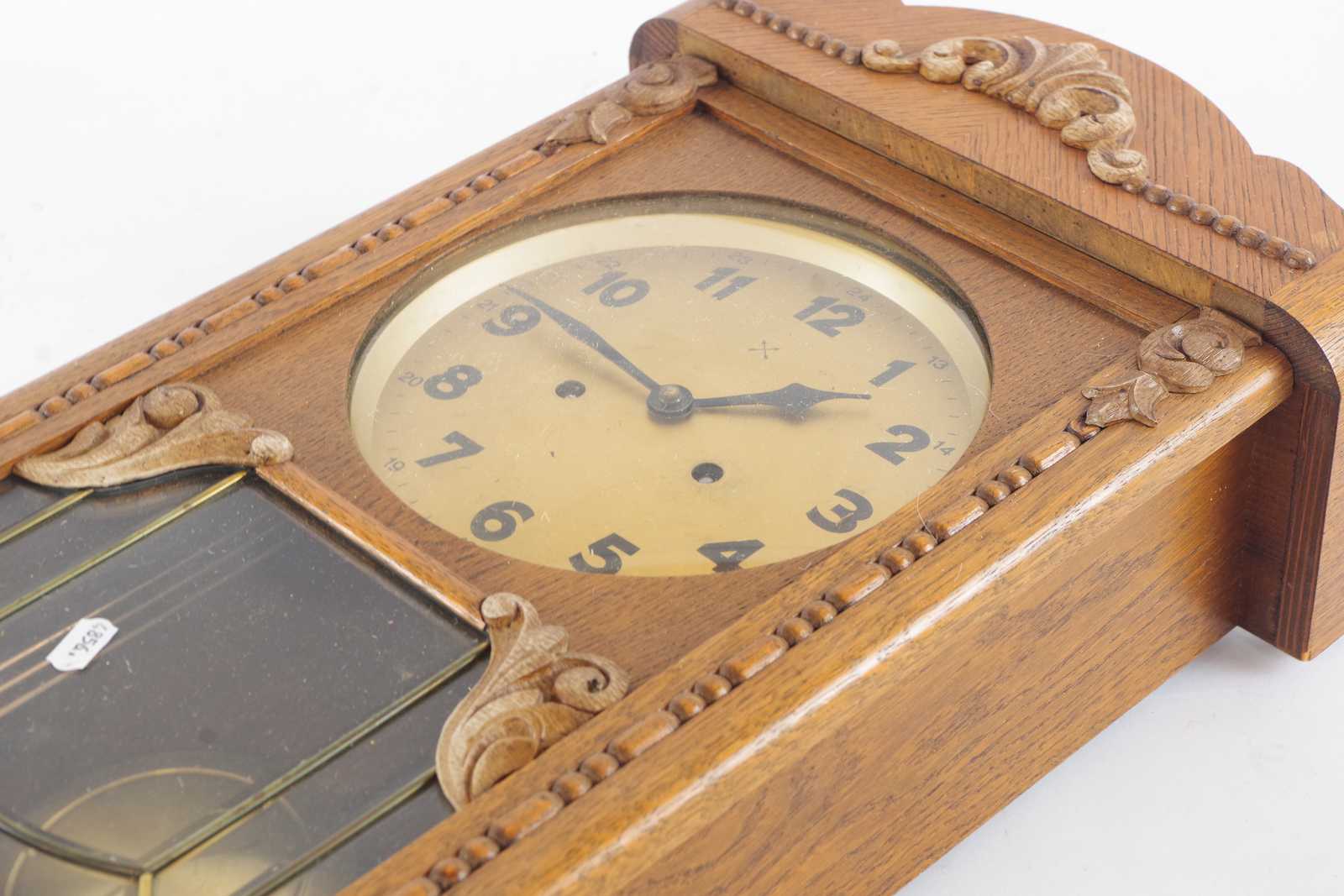 VÄGGKLOCKA i ek, 1900 talets första hälft. 32x60cm