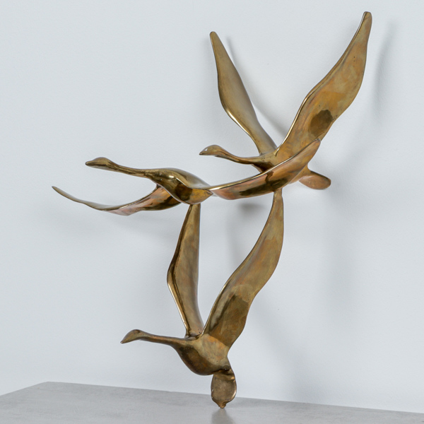 Bilder Skulptur, föreställande gäss i formation, mässing