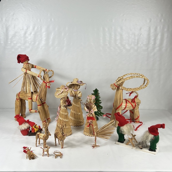Julbockar och figuriner i halm.