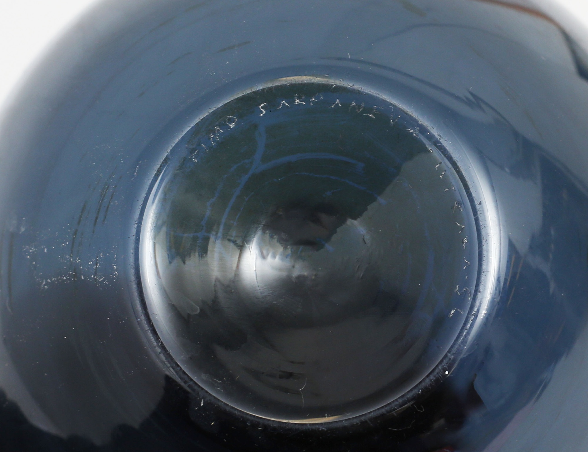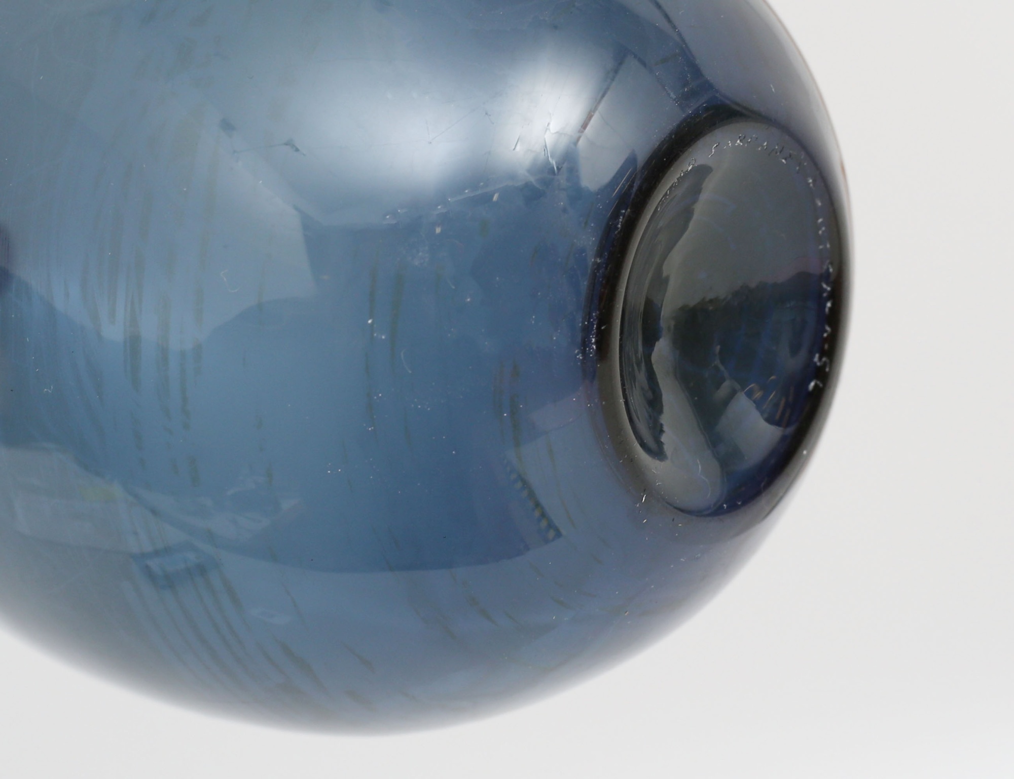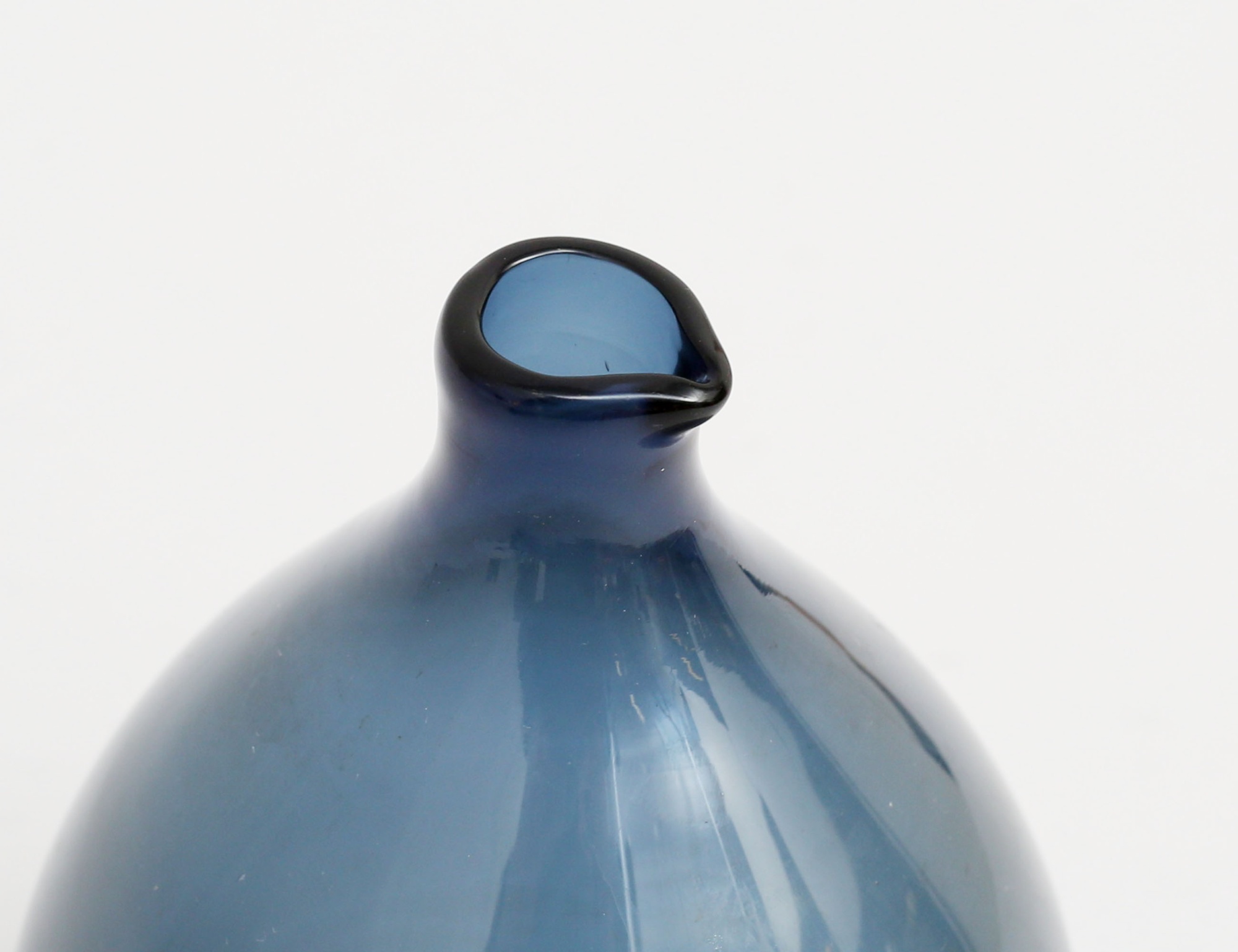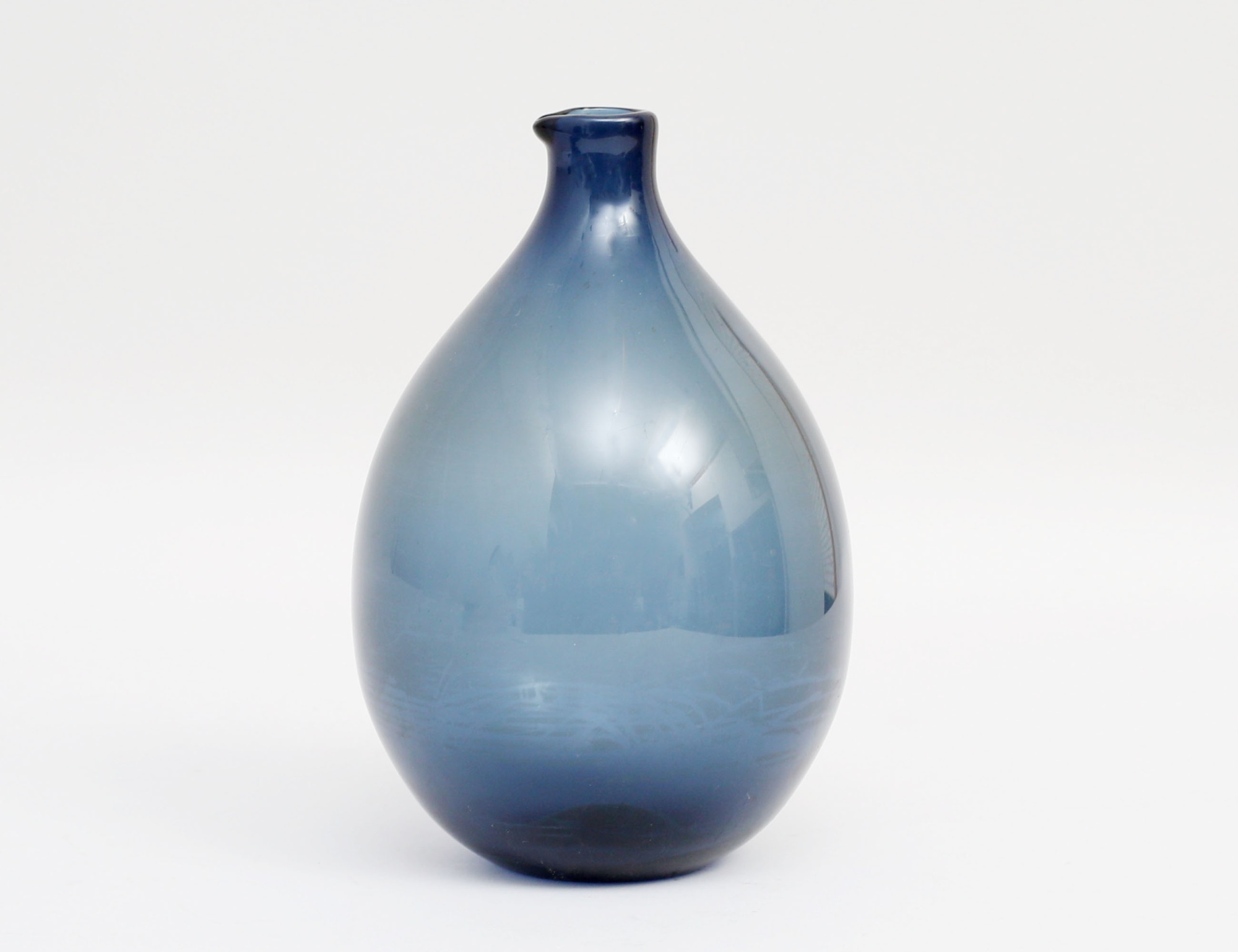 vas "Pullo" fågelflaska, formgiven 1957, ljustblåtonat glas, signerad SL, höjd 16 (smärre repor och invändig beläggning)