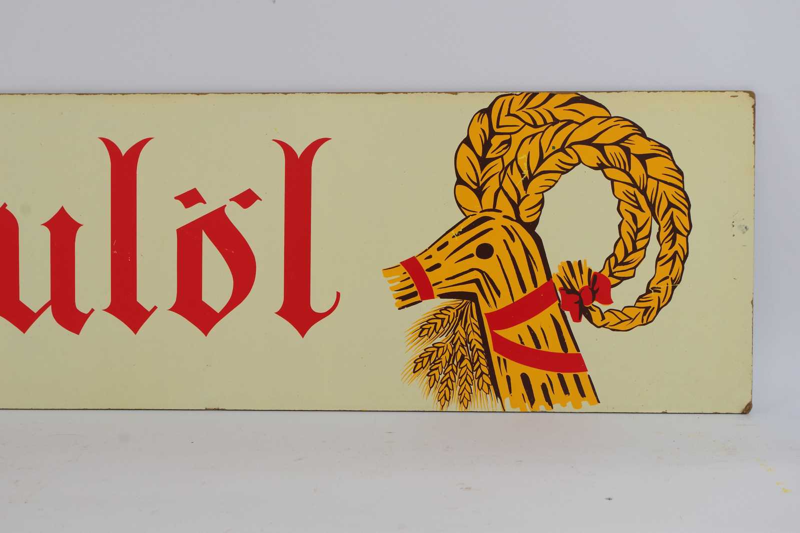 Bilder REKLAMSKYLT Kopparbergs Julöl, tvåsidig, tryckt på masonit, 1900 talets mitt. 110x25cmcm (slitage, färgbortfall förekommer)