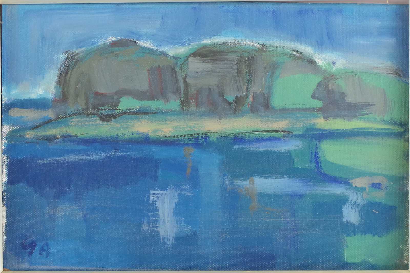 Bilder TAVLOR 2st, Oidentifierad konstnär, signerad G.A, akvarell & olja på pannå. 54x37cm rammått största