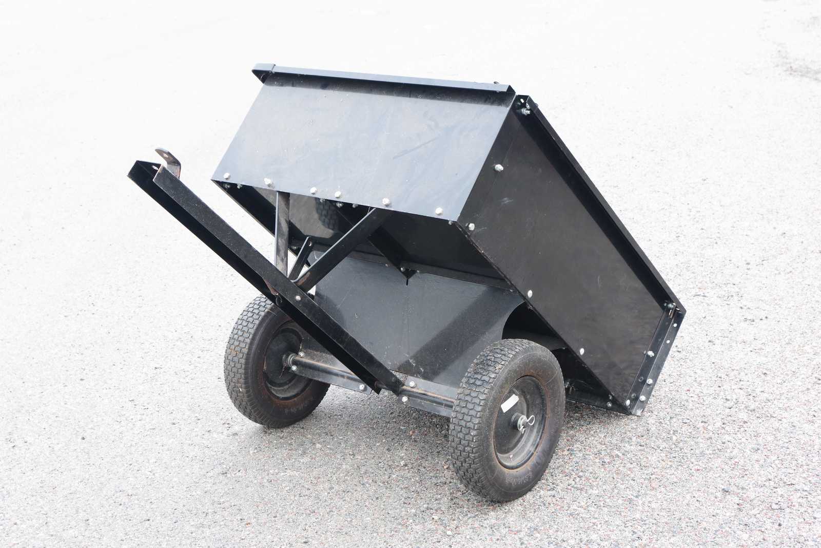 KÄRRA med tipp, lämplig för trädgårdstraktor, ATV eller liknande. lastutrymme H:30x 76x 95cm