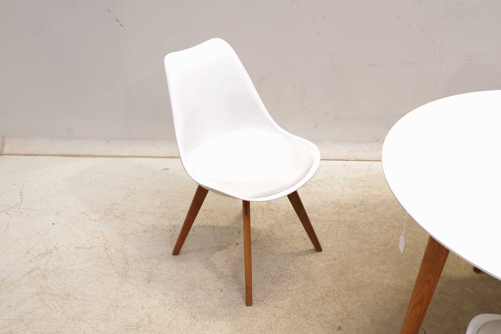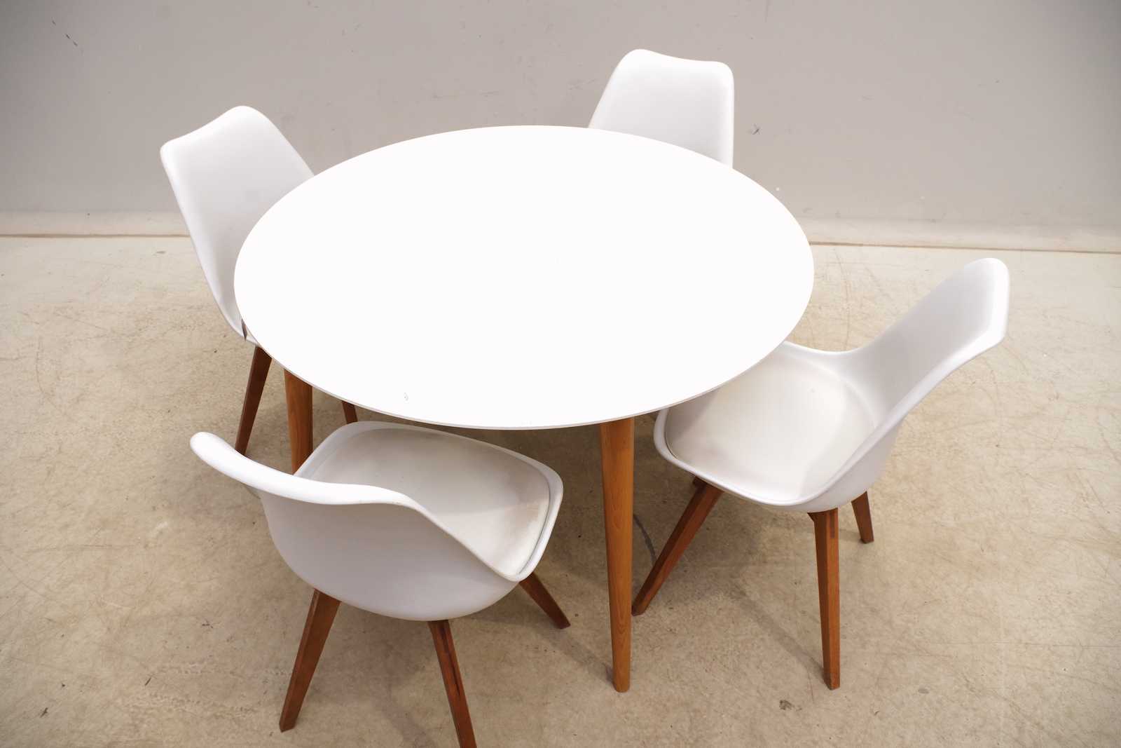 Bilder MATGRUPP, 4st stolar, modern tillverkning, trä/plast. D: 110cm, H: 73cm (Bord). bruksslitage/fläckar.