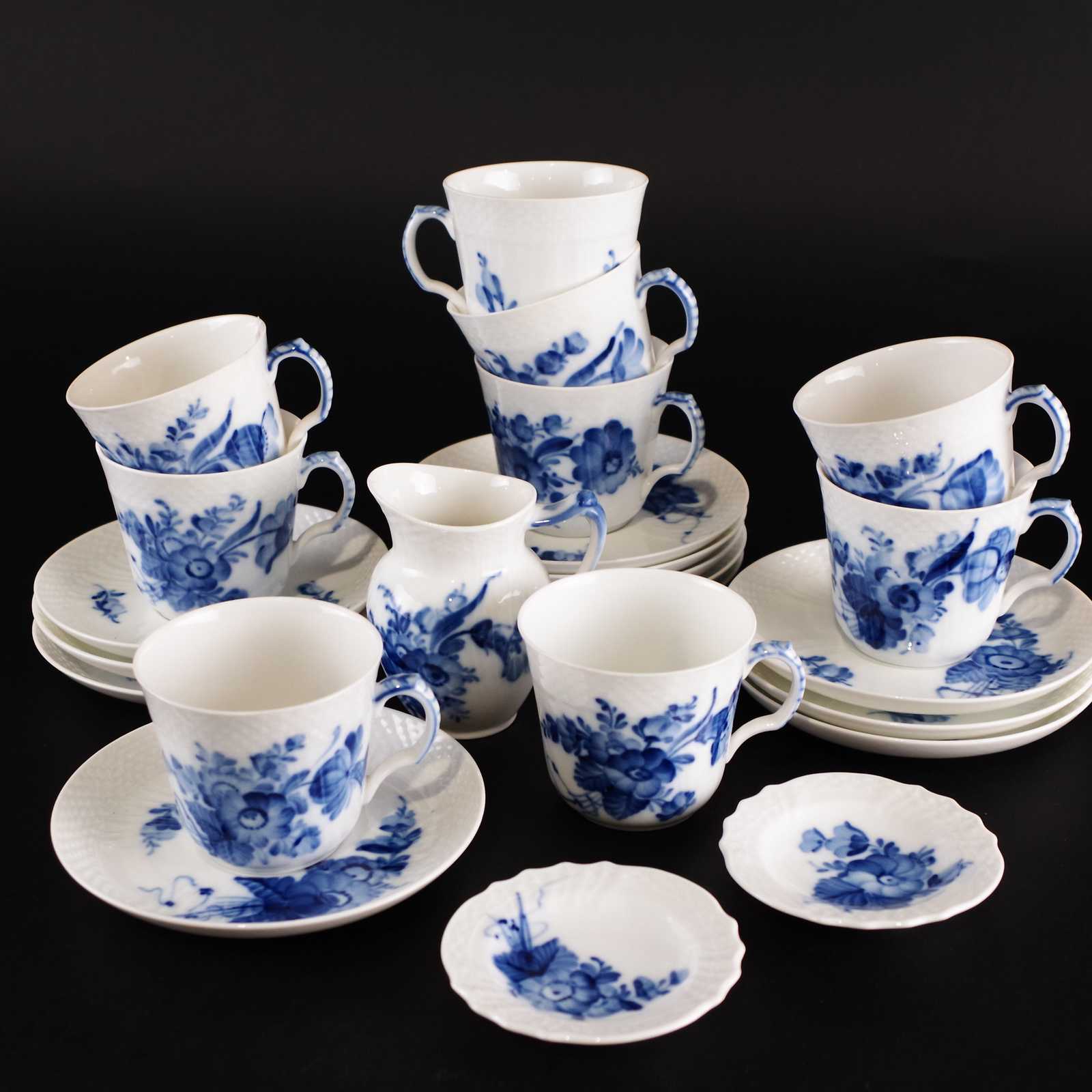 KAFFESERVIS Royal Copenhagen, Danmark. Blå Blomst. H:5,5cm D:6,5cm kaffekoppar. 24 delar totalt.