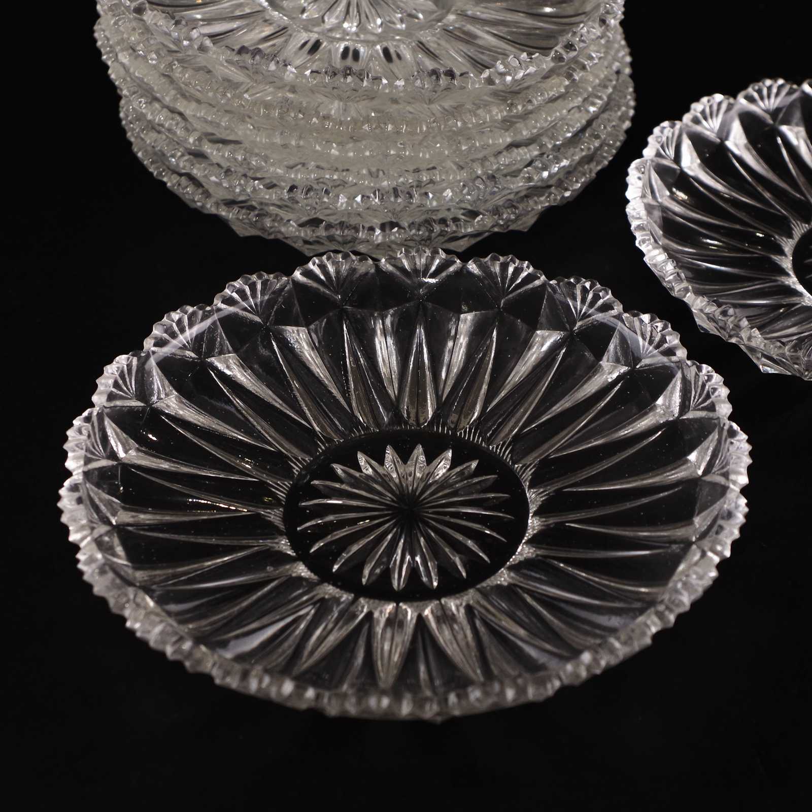 ASSIETTER 8st äldre, pressglas. D:15cm.