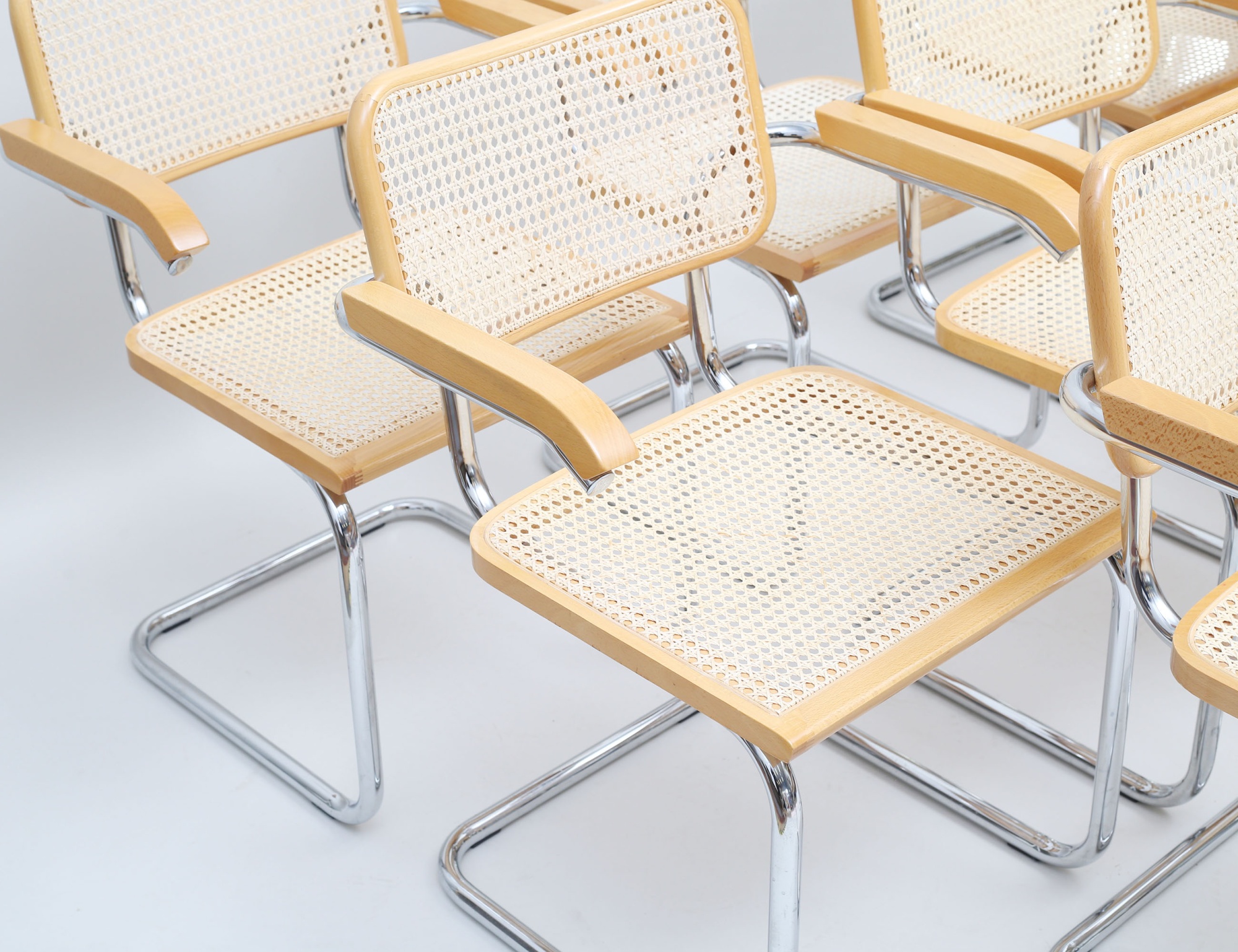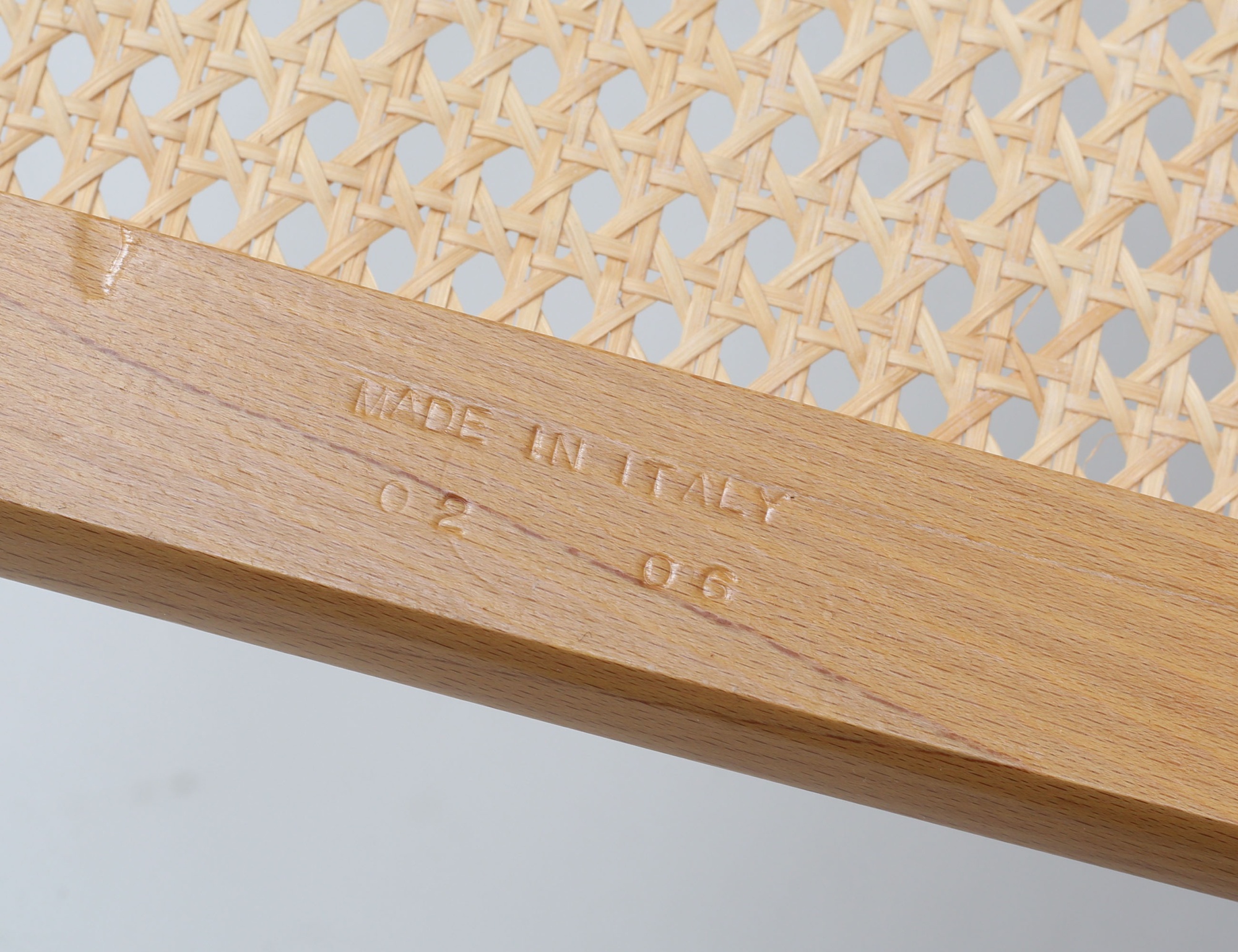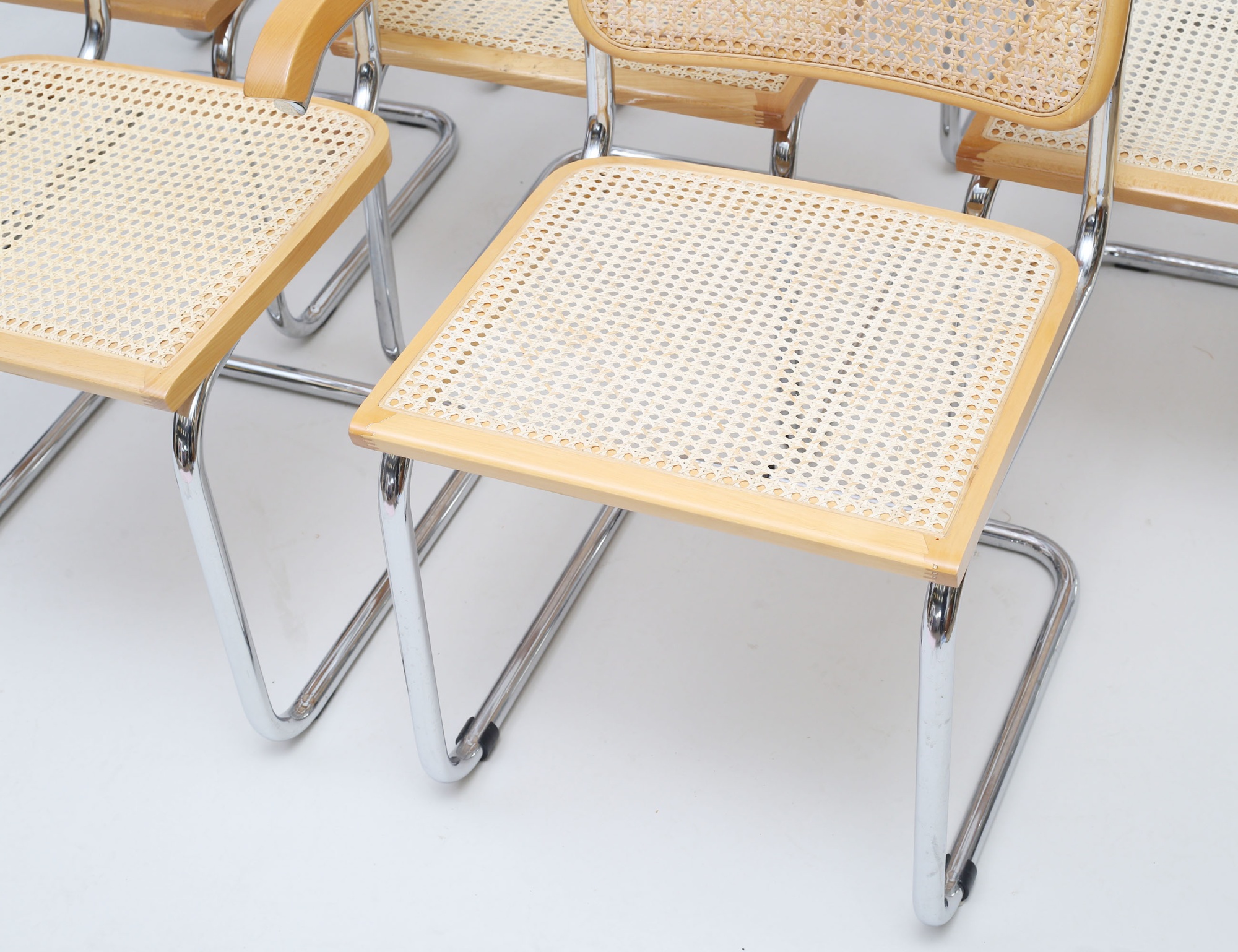 Italien 1900-talets andra hälft, varav 7 med karm, stomme i kromade stålrör, bok, sits och rygg i rotting, märkta Made in Italy 02 06, höjd 80, bredd 60