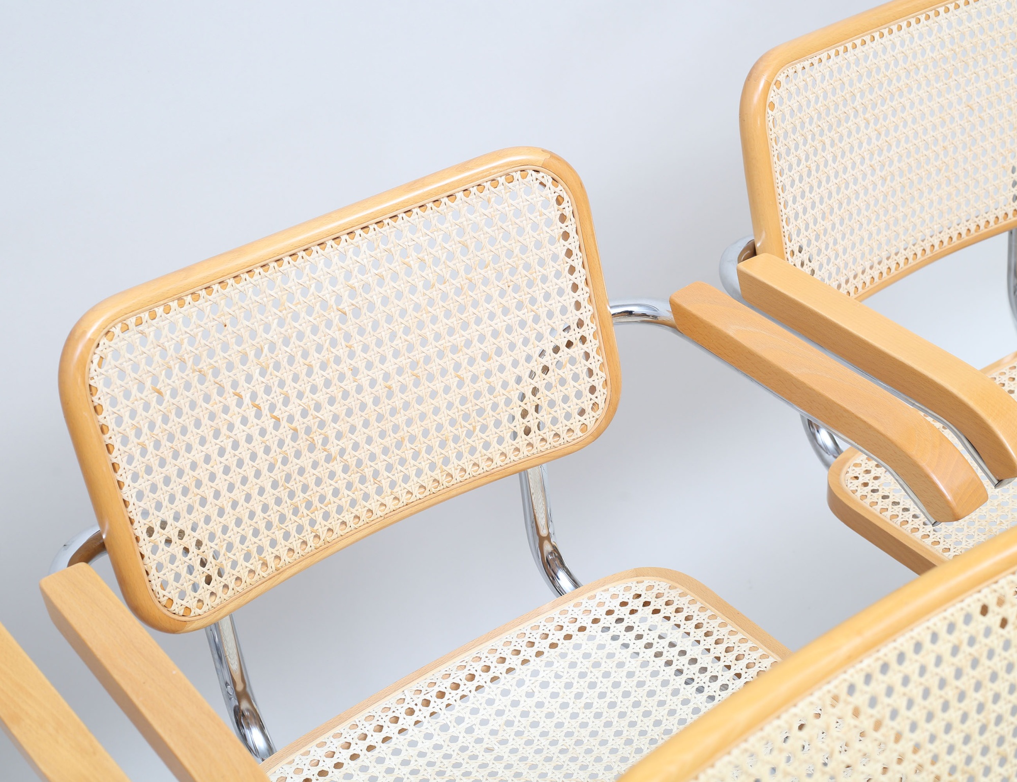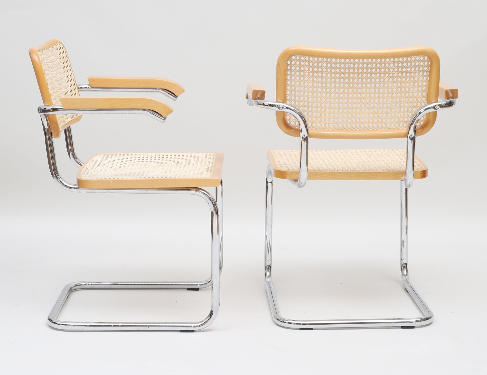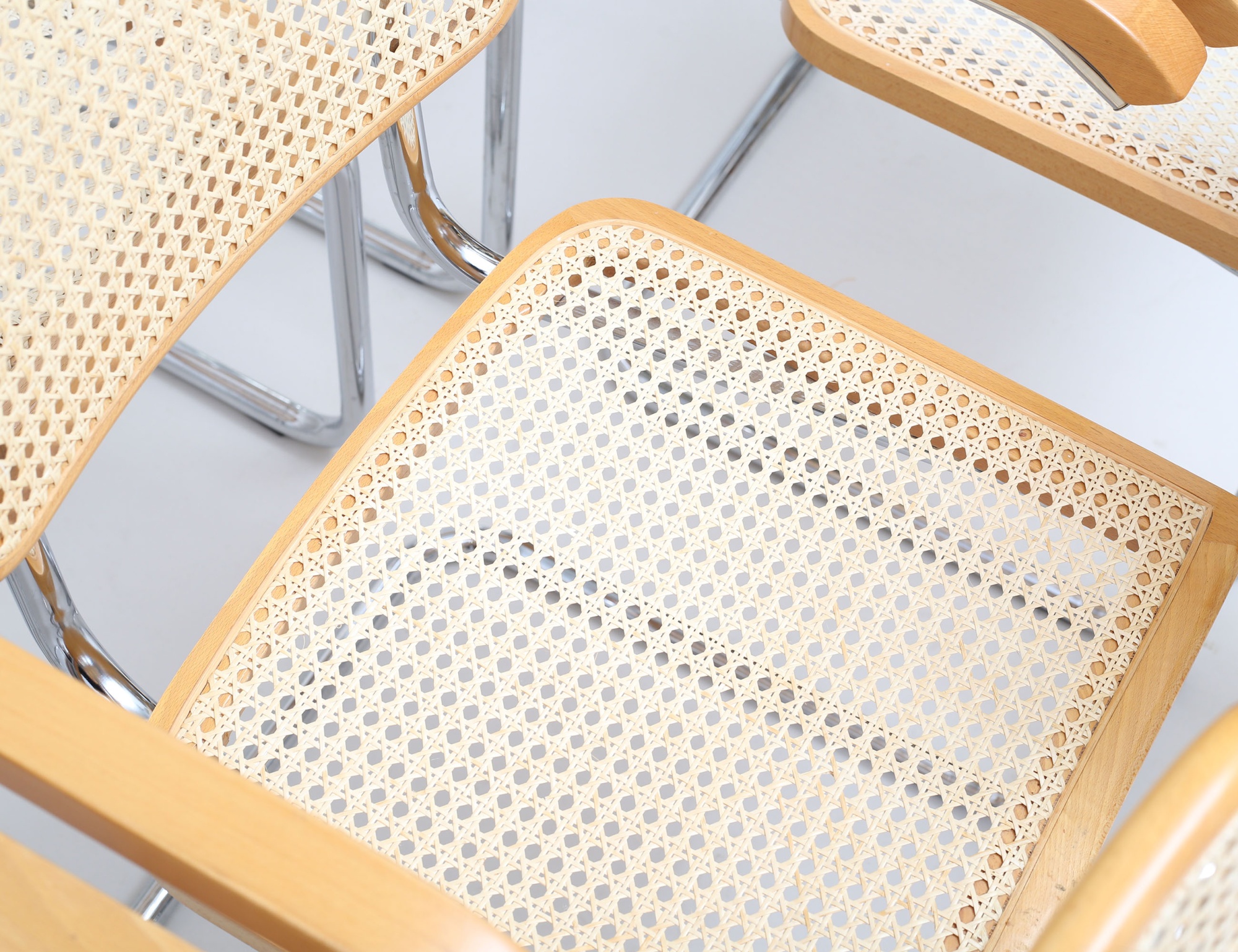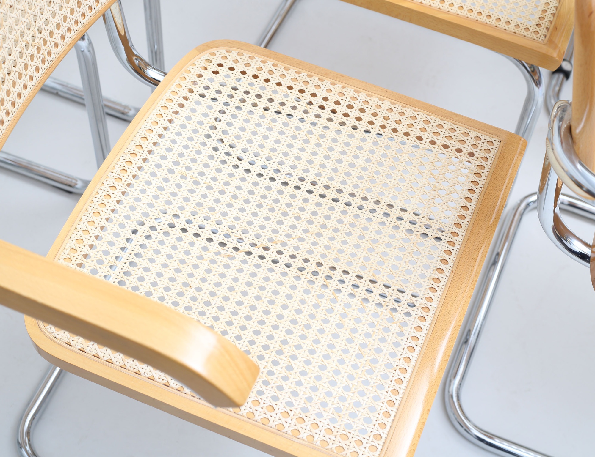 Italien 1900-talets andra hälft, varav 7 med karm, stomme i kromade stålrör, bok, sits och rygg i rotting, märkta Made in Italy 02 06, höjd 80, bredd 60