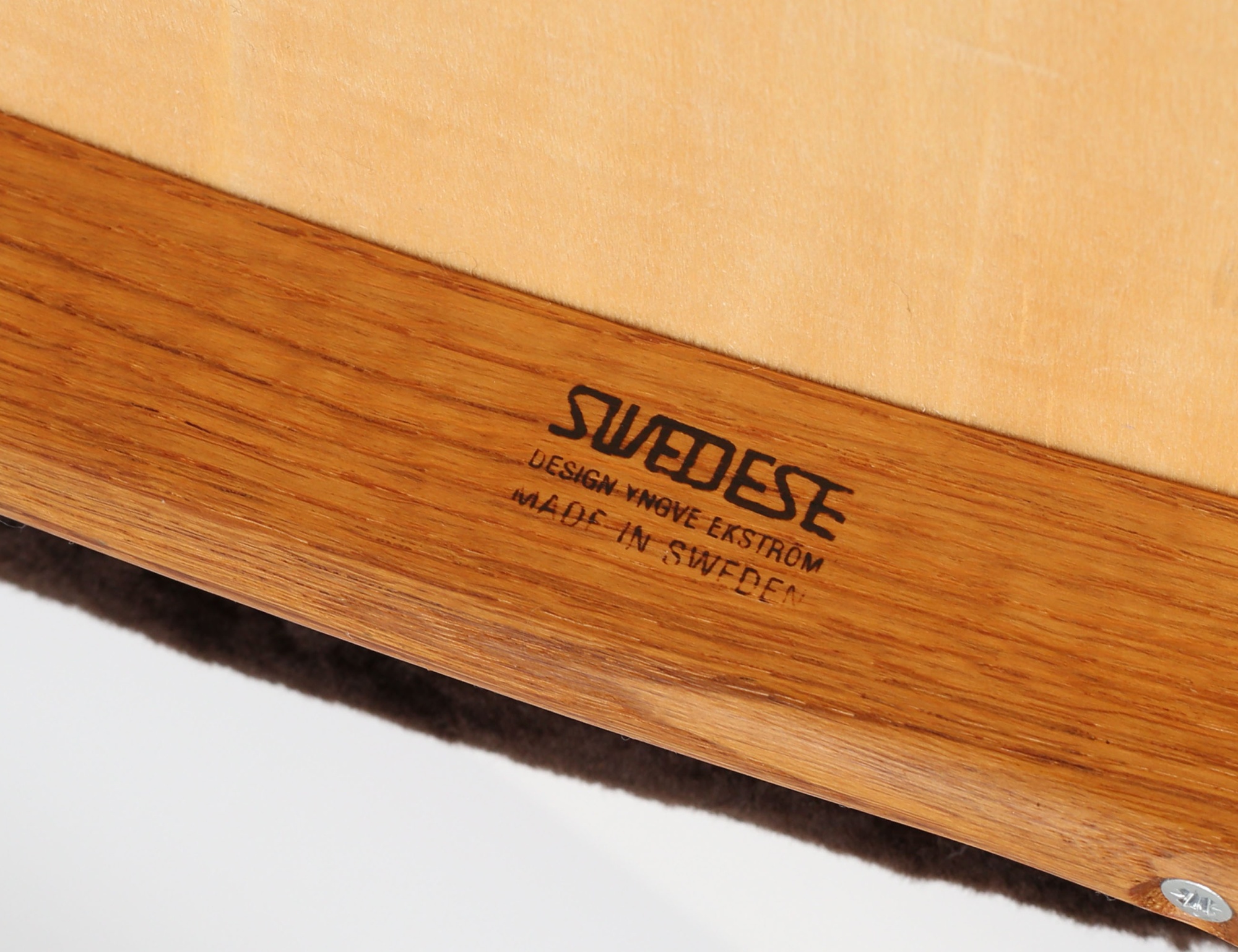 ek, brunt fårskinn, Swedese etikettmärkt och brännstämpel, höjd 50, bredd 60