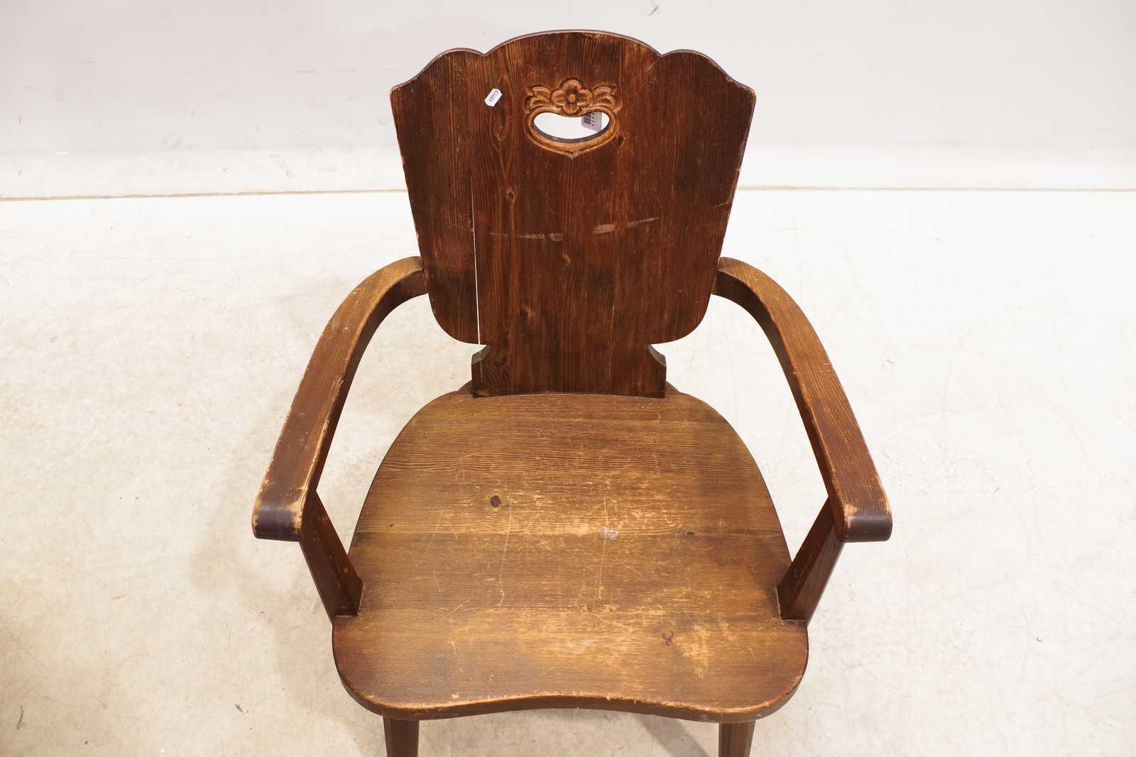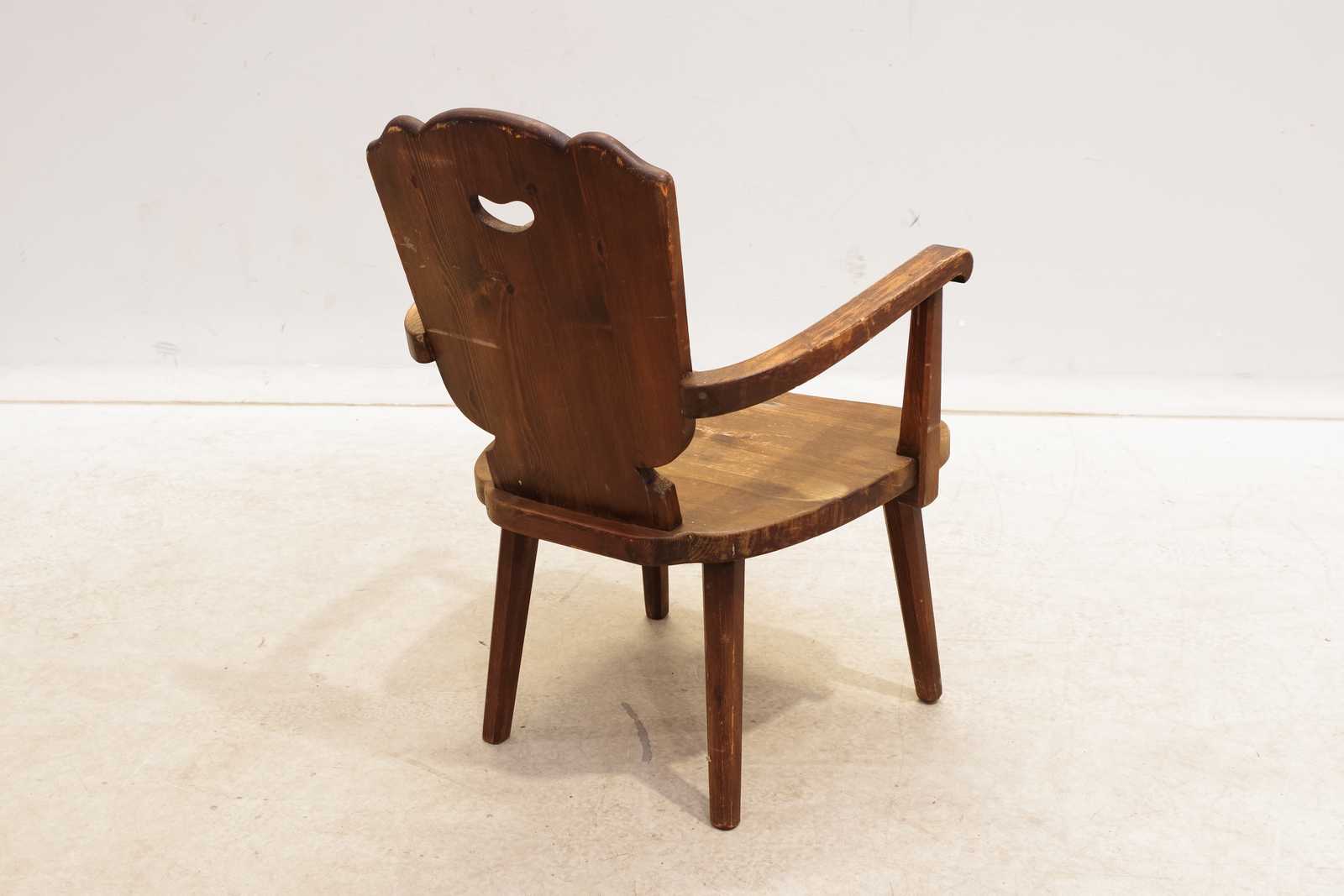 KARMSTOLAR ett par, betsad furu, 1900-tal. Smärre torrsprickor förekommer.