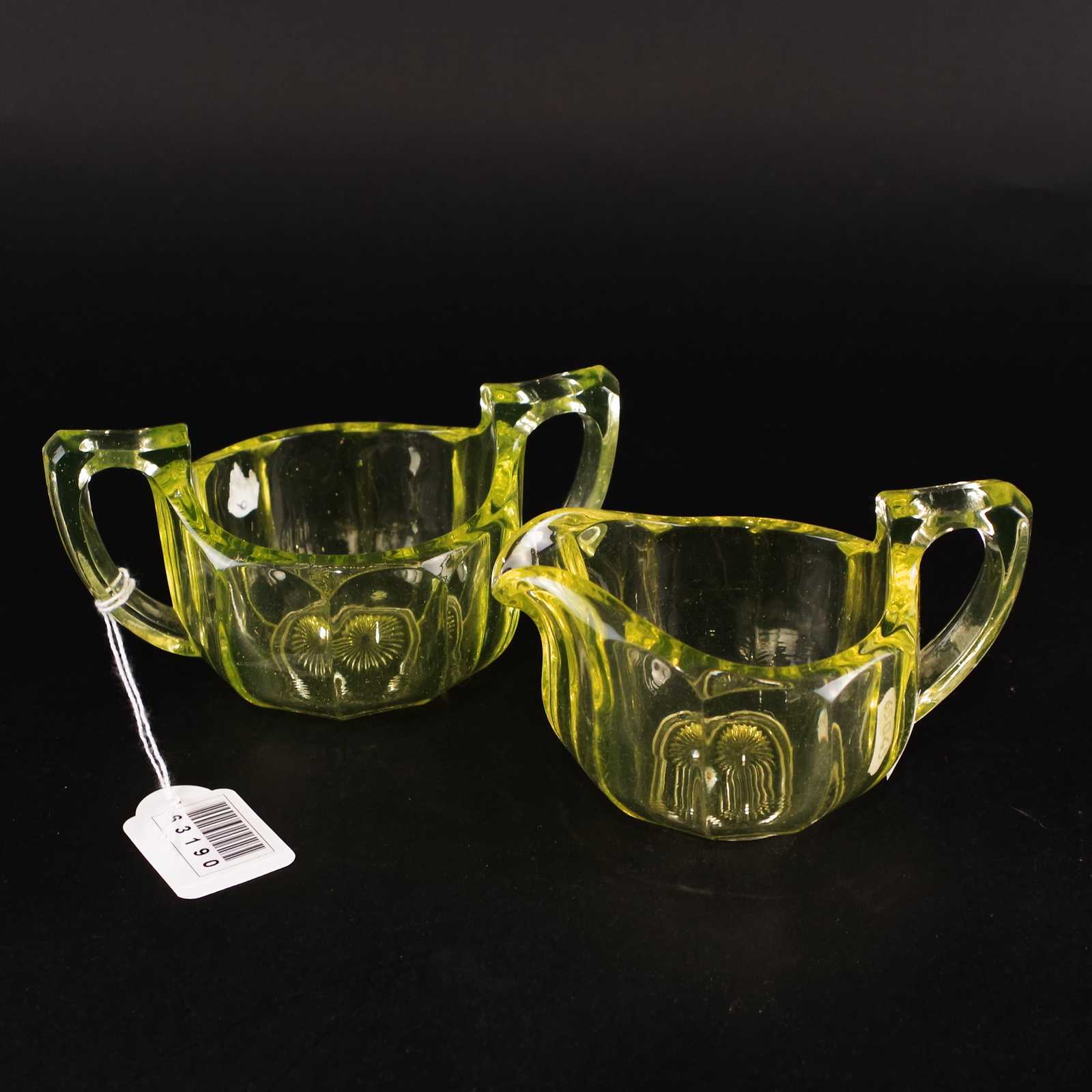 URANGLAS GRÄDDKANNA & SOCKERSKÅL H:7,5cm.