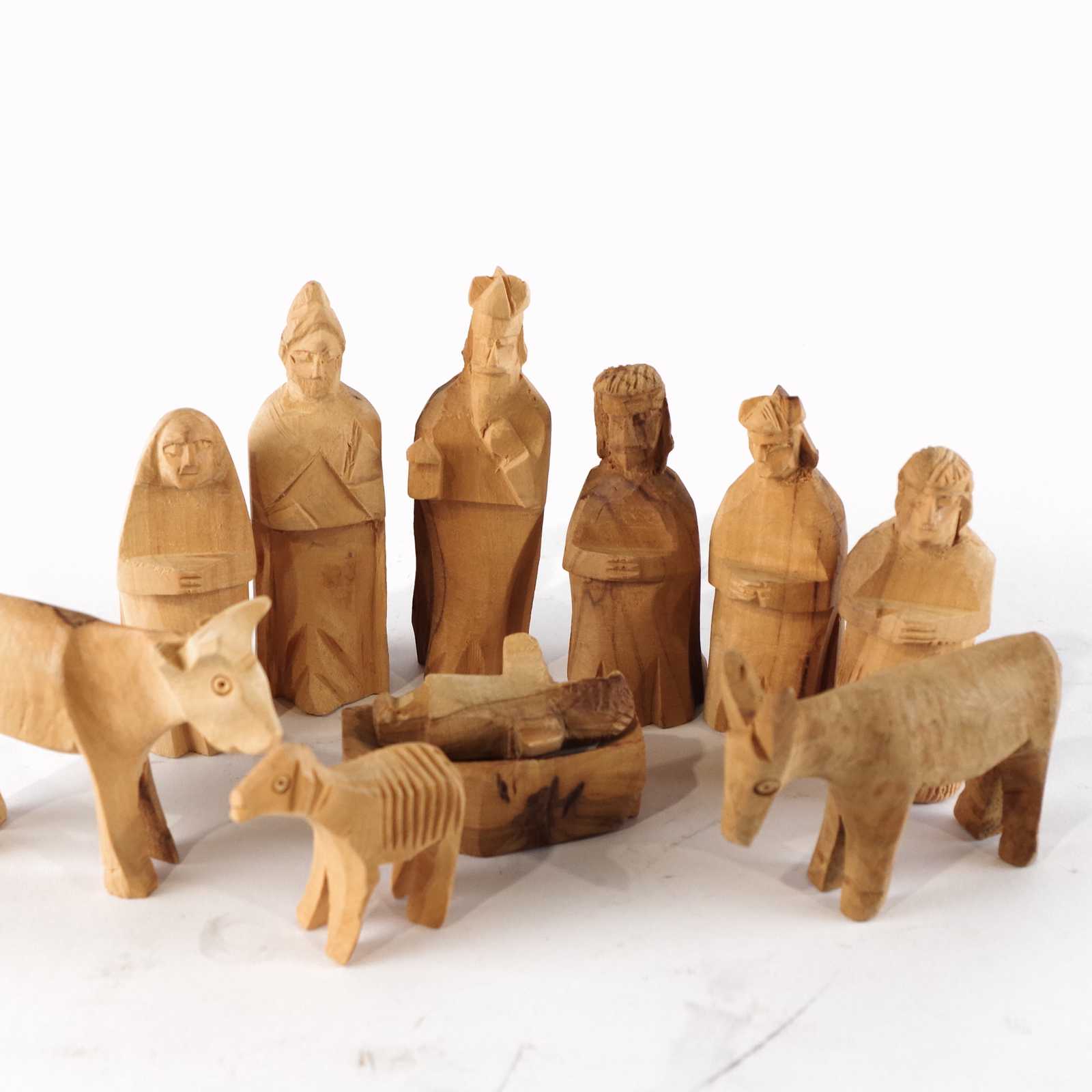 Parti TRÄFIGURER till julkrubba. H:9,5cm största.