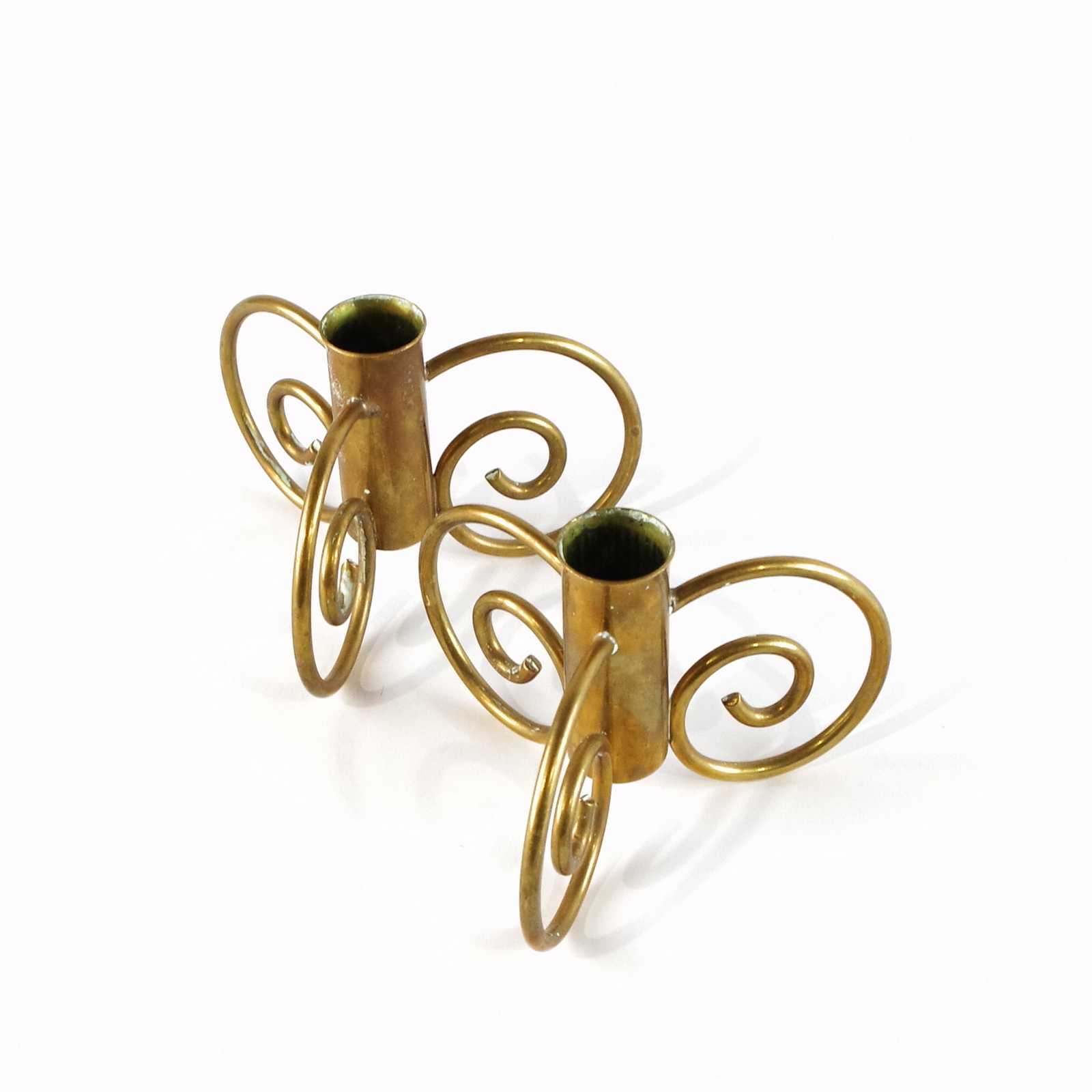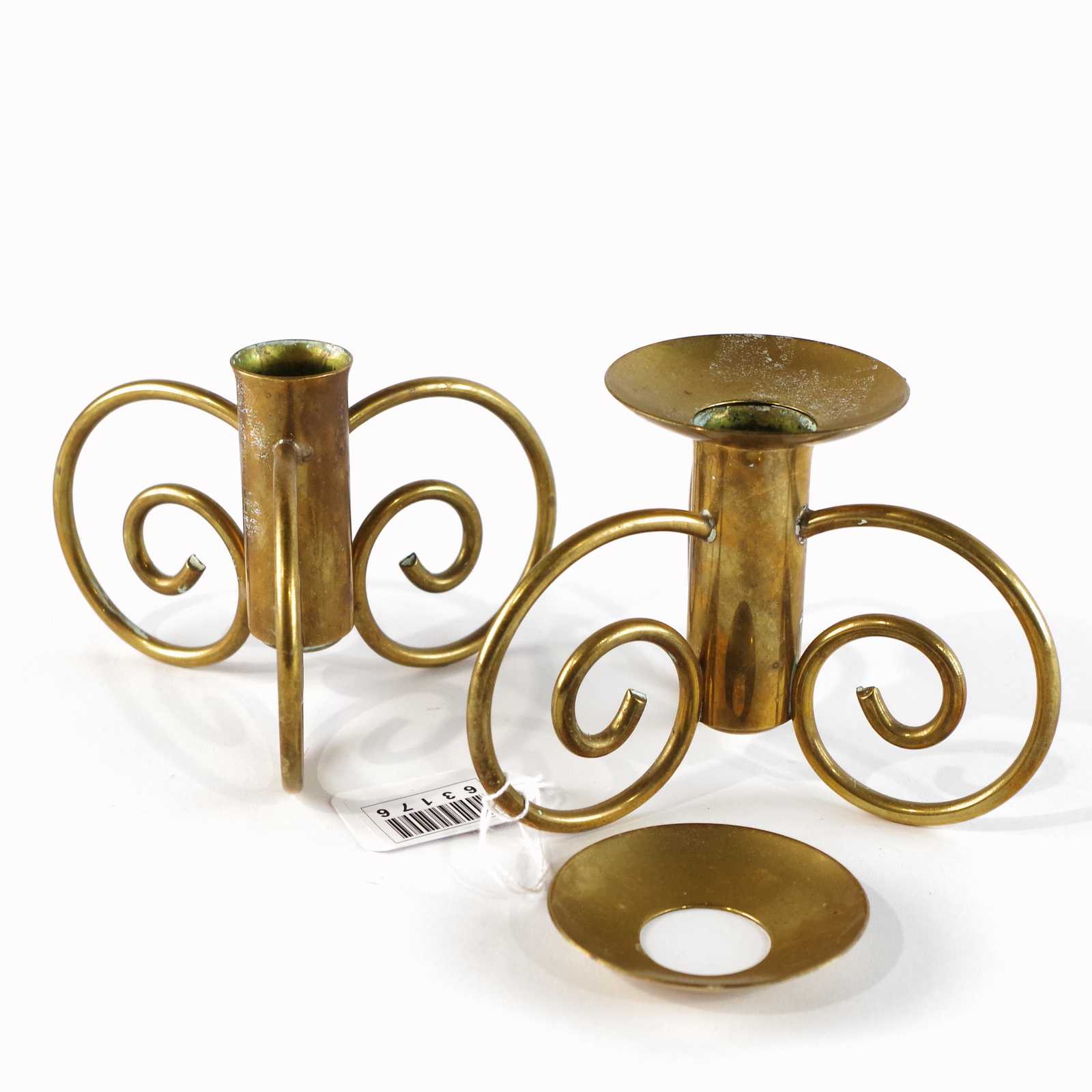 LJUSSTAKAR mÀssing. Firma Lars Holmström, Arvika. H:8,5cm. B:12cm.