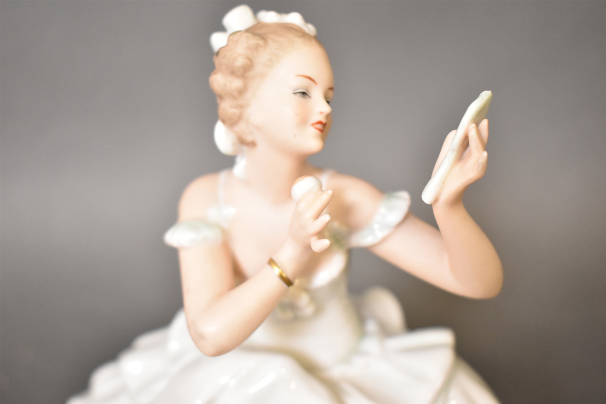 Figurin Wallendorf "Kvinna med puderdosa", porslin höjd 19 cm