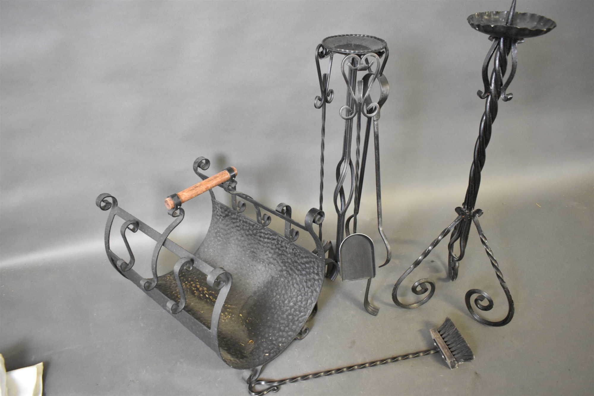 Smide, vedhämtare, ljusstakar eldset, högsta 80 cm