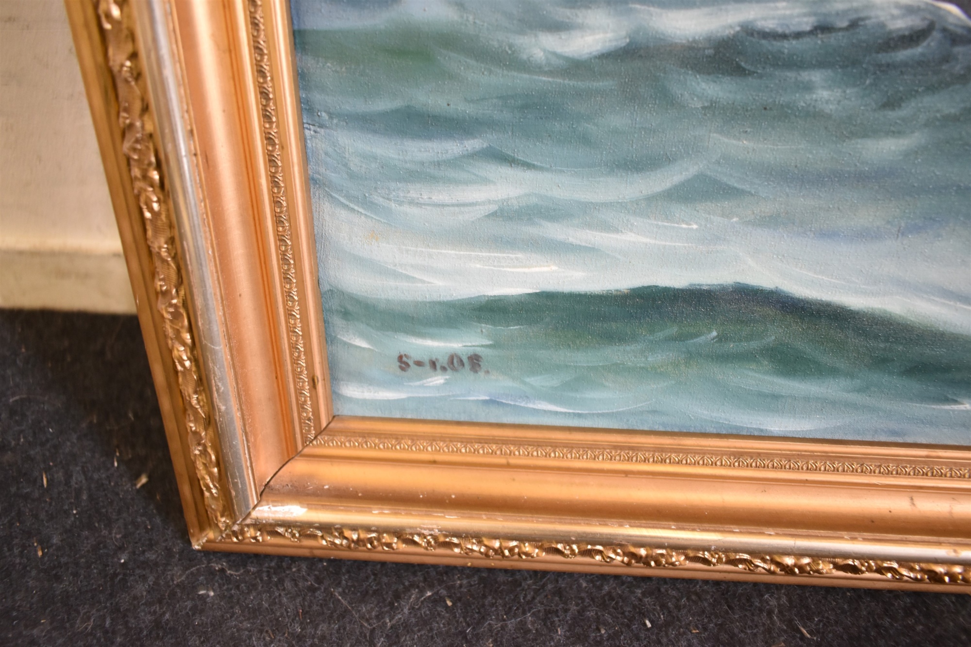 Bilder Monogramsignerad olja på duk, "Den gamla Vingalotsen", mått 95 x 74 cm