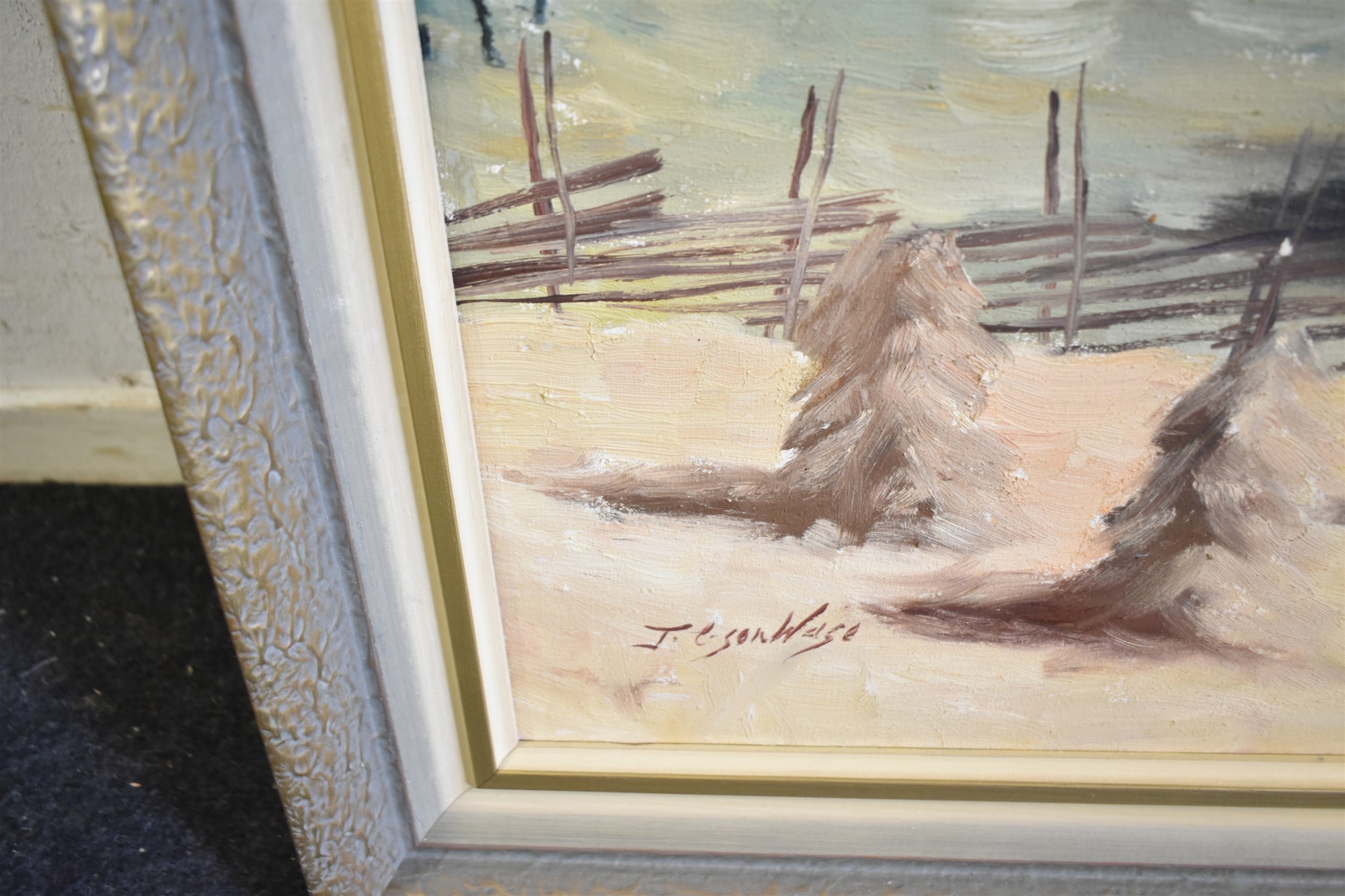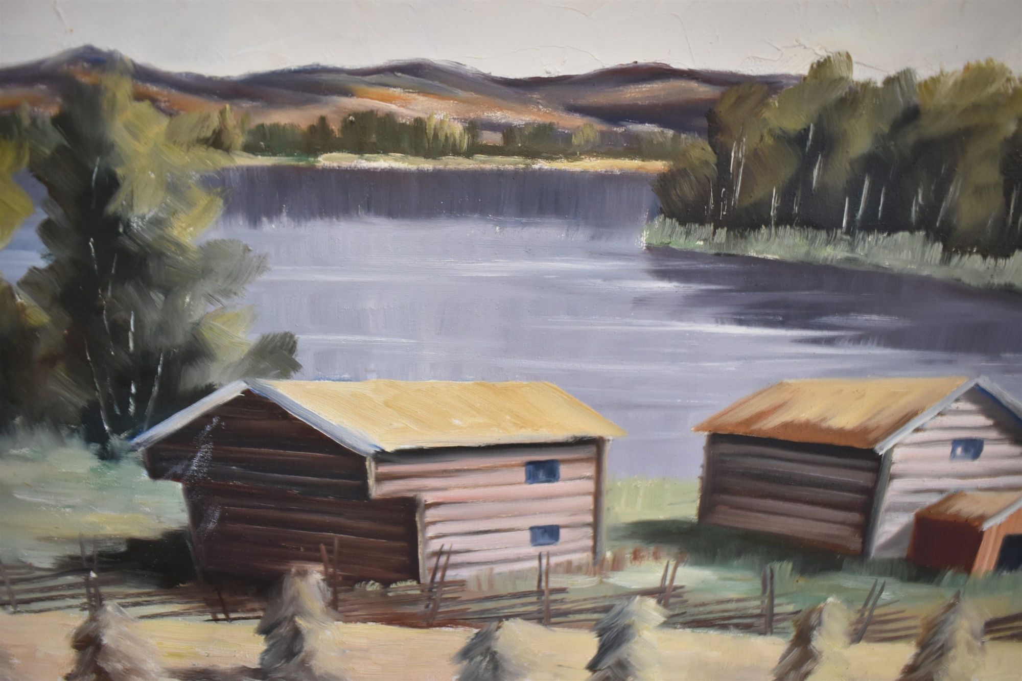 Bilder Signerad olja på duk "Fäbodar", mått 92 x 77 cm