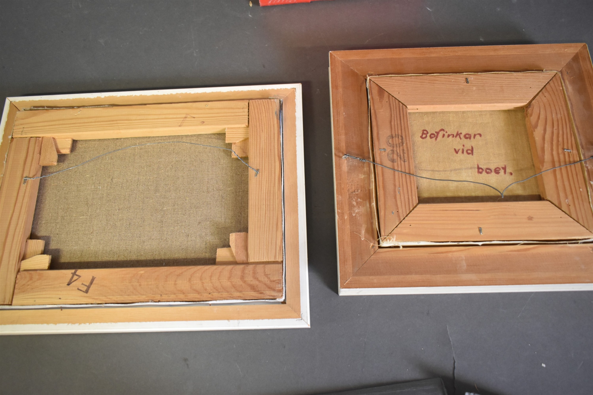 Auktioner Konst & Grafik Claesson & monogramsignerad olja på duk 2 st, "Småfåglar" största mått 38 x 30 cm