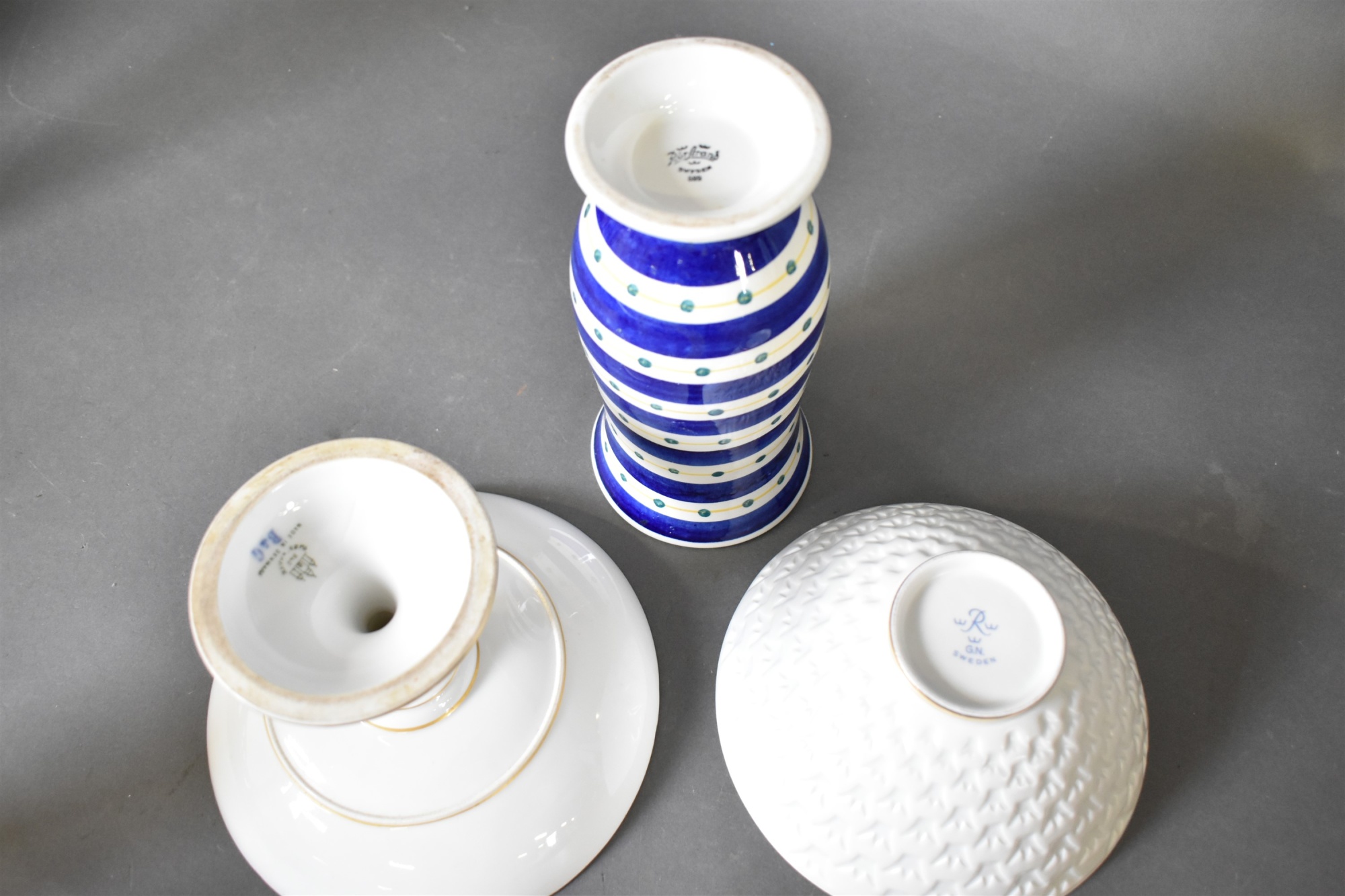 Auktioner Keramik & Porslin Vas, Rörstrand, Kronskål, Gunnar Nylund & skål på fot Bing & Gröndal, högsta 22 cm