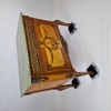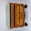 1900-talets mitt. Intarsiadekor. Fanerad med olika träslag. Tre lådor. Skiva av marmor.