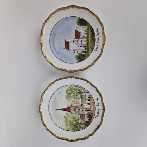 Motiv av Vallby kyrka och Östra Hoby kyrka.