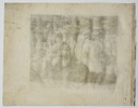 This engraving depicts Saint Hilarion, a foundational figure of Christian monasticism. He is shown as a hermit, seated at the base of a large tree and engrossed in reading a book, which symbolizes his life of scholarly devotion and contemplation in the wilderness. In the background, a small settlement of simple huts is visible, likely representing the hermitage or monastery he established. The Latin text below the image provides details and commentary on his life.Giovanni Merlo was an Italian engraver and printmaker active primarily in the mid-17th century. He is known for his work in producing a variety of prints, including religious subjects, allegorical scenes, and topographical views. His engravings contributed to the visual culture of the Italian Baroque, often depicting saints, devotional themes, and historical events.