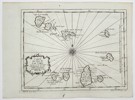 This topographical chart depicts the Cape Verde Islands (Carte des Isles du Cap Verd), located in the Central Atlantic Ocean off the coast of West Africa. The map is presented as a maritime chart, showing the individual islands, their principal towns, and the surrounding waters, with lines radiating from a central point indicating compass bearings (a rhumb line network). The title is enclosed in an elaborate, decorative cartouche in the lower left corner.Jacques-Nicolas Bellin was a preeminent French hydrographer and geographer of the 18th century. He served as the official hydrographer for the French Navy and was a member of the French Académie des Sciences. Bellin produced an immense and critically acclaimed body of accurate maps and charts, contributing to major geographical publications, including his own multi-volume Petit Atlas Maritime, from which this map originates.