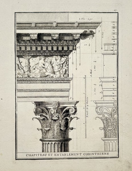Bilder Giacomo Barozzi da Vignola (1507–1573), after – Corinthian Capital and Entablature – Engraving (c. 1747)