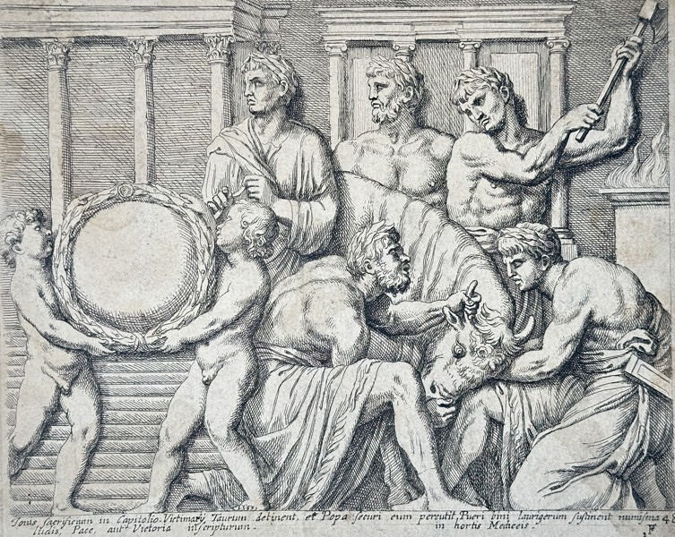 Bilder Cornelis Bloemaert II (1603–1692) – The Sacrificial Taurus in the Capitoline Museum – Engraving (c. 1650)