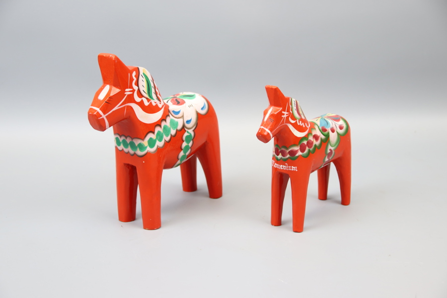 Bilder Dalahästar, 2 st, trä, bl.a G.A Olsson, Nusnäs.