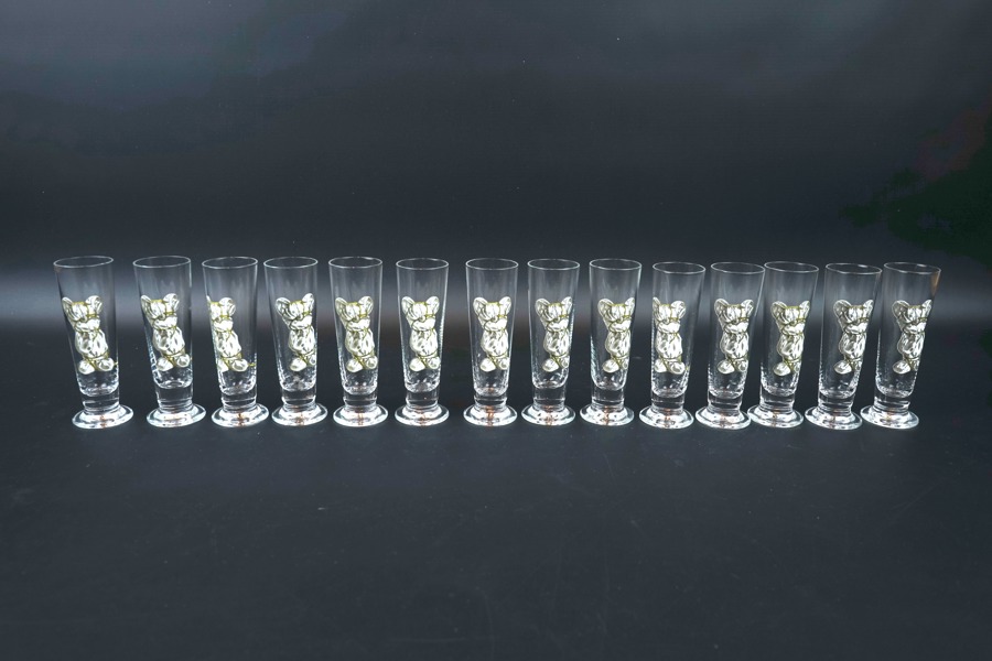 Lasse Åberg, snapsglas, 14 st, "Packad mus".