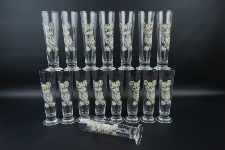 Lasse Åberg, ölglas, 16 st, "Packad mus".