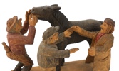 Bilder Träfigur, skuren, ''Hästhandel'', osignerad, 1900-tal.