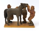 Träfigur, skuren, ''Hästhandel'', osignerad, 1900-tal.