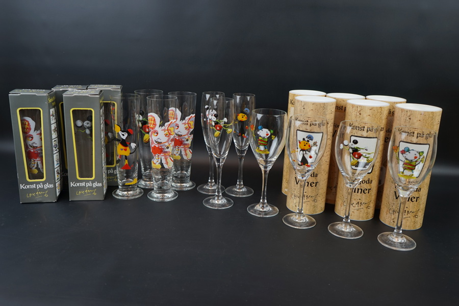 Bilder Lasse Åberg, glas, 21 st, 3 olika modeller.
