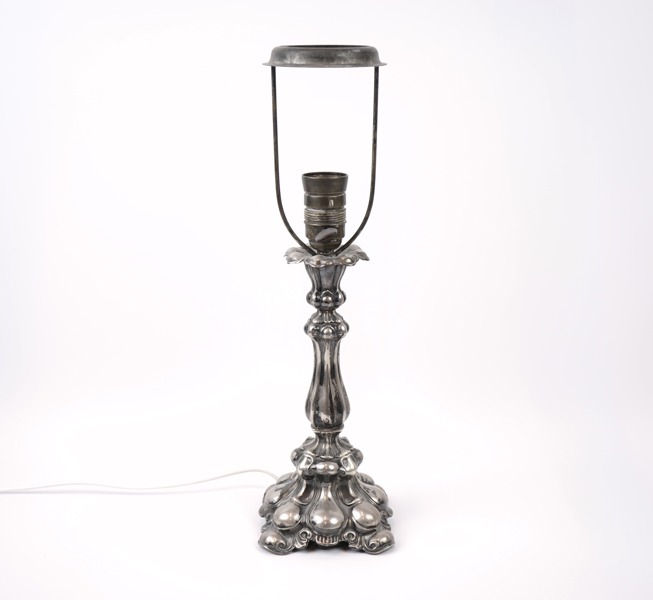 Ljusstake, silver, omgjord till bordslampa, barockstil, C.G. Hallberg, 1933.