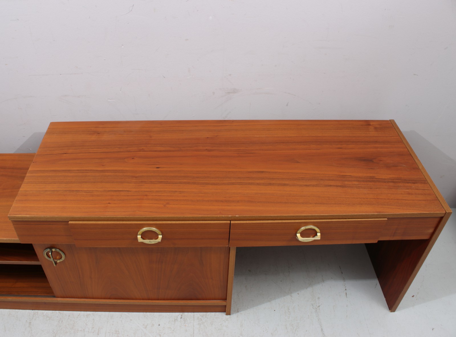 Fanerad med teak, 2 delar, utdragbar på bredden, 1960,70-tal, mindre åldersrelaterat slitage, H.44-57, B.232-242, Dj.43-49 cm. (vån1)