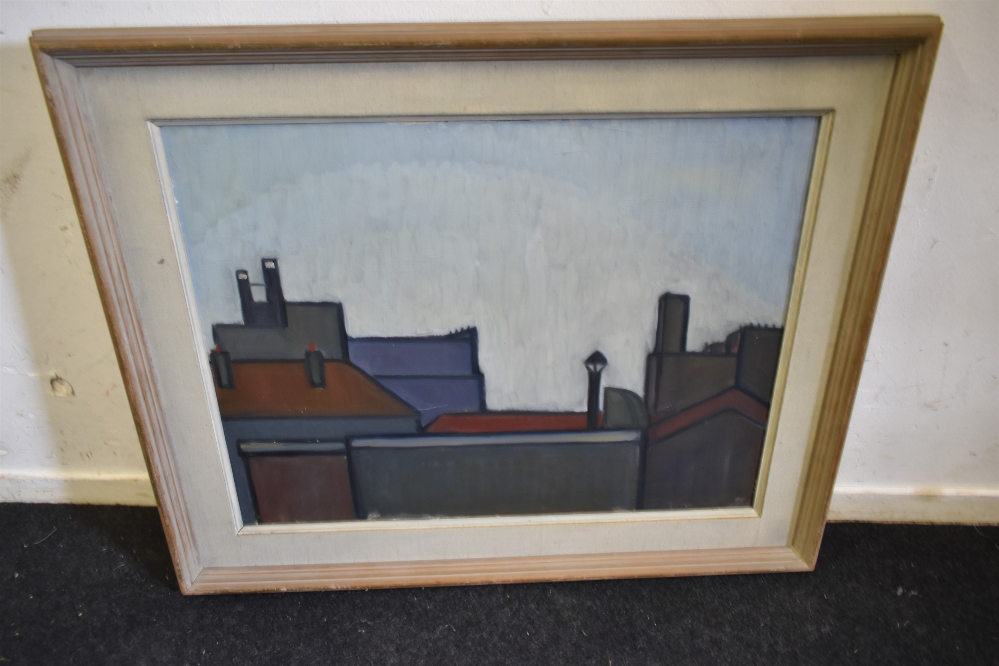 Vävnad, "Utsikt från Vättaberget, Medelpad", signerad TÖ i vävnad samt signerad baksida ram samt daterad 1986, 85x170 cm. (vån1)