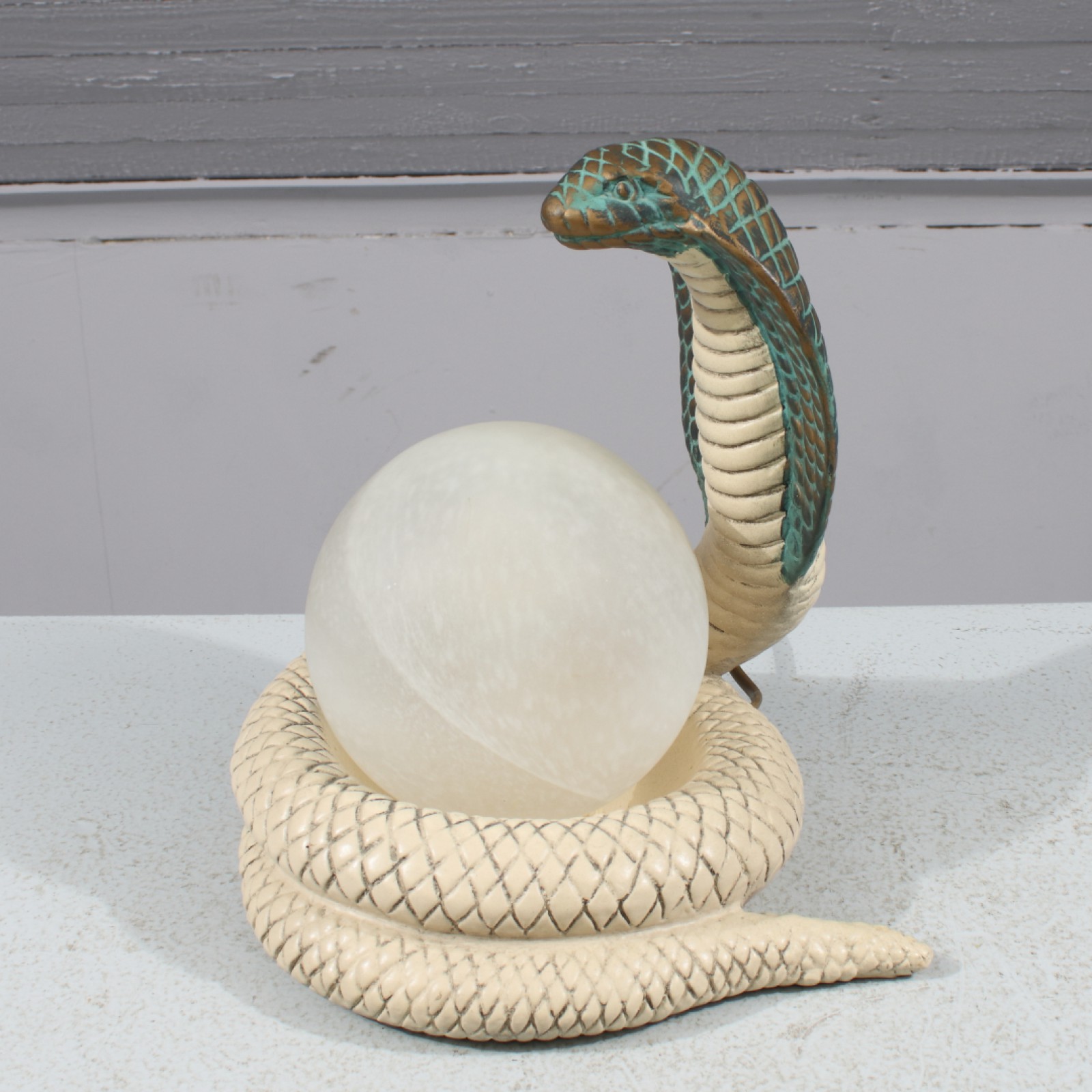 Kobra i lergods, klotformad skärm i glas, 19,2000-tal, höjd 26 cm. (vån3)