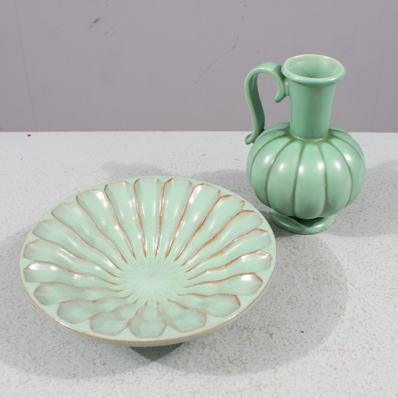 2 delar, 1930,40-tal, höjd vas 16 cm, diameter skål 21 cm. (vån3)