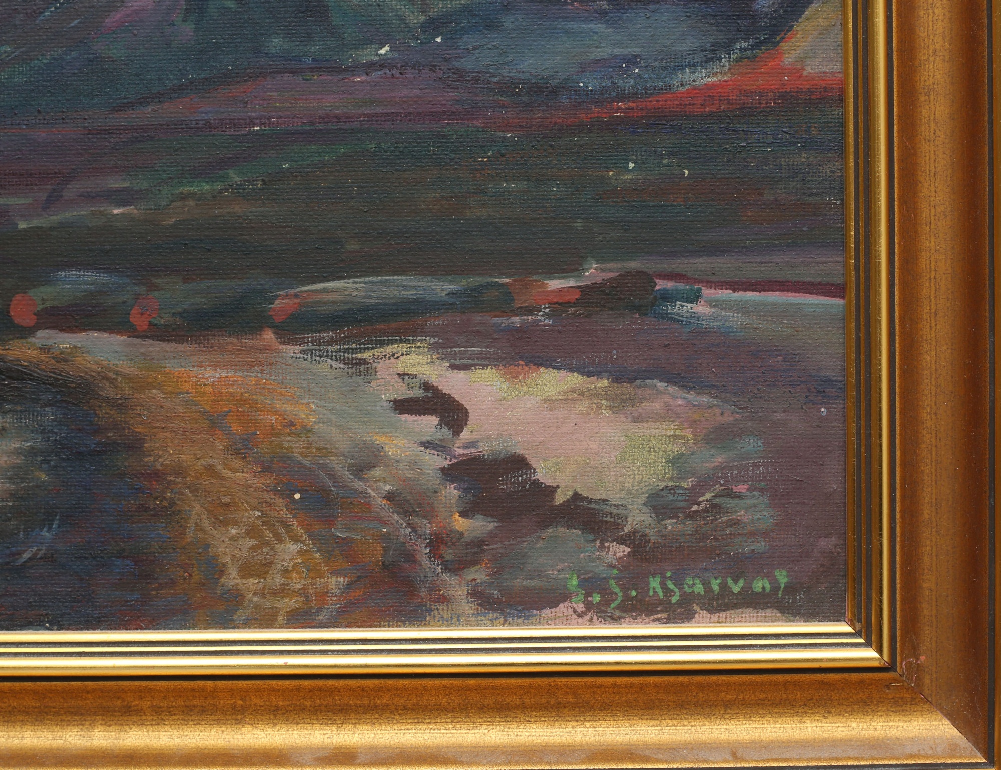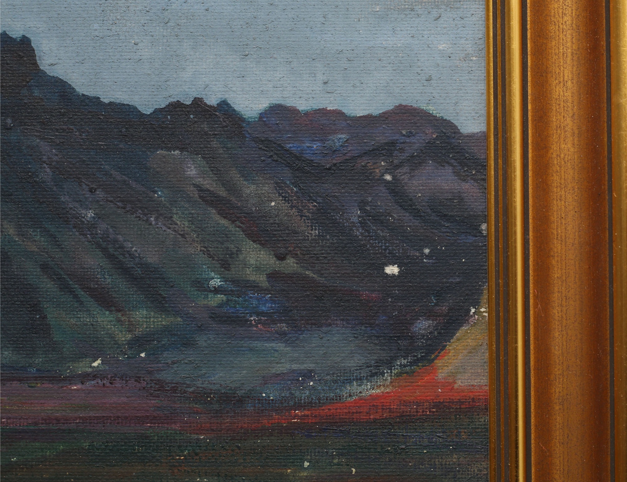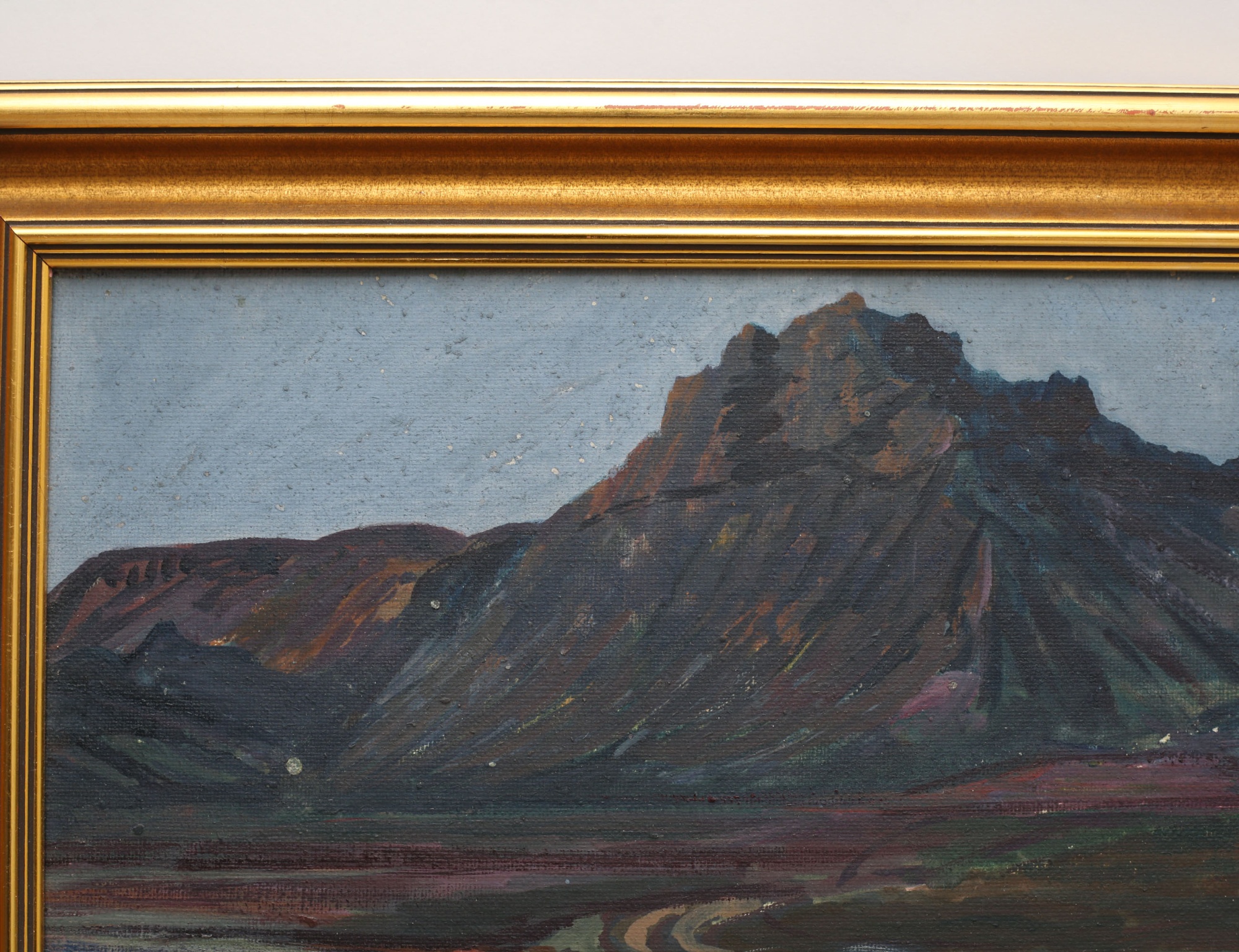 oljemålning på pannå, motiv från Berget Vífilsfell utanför Reykjavik, signerad, historik: kommer... , 29x44, rammått 39x54 (smärre färgbortfall samt fläckar)