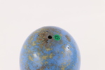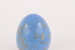 Skulptur i starkeldsfajans, ägg. Signerad. Ställ i järn.