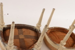 Bemålade. Med skuren dekor. Kragade, kannelerade ben. Skurna fleuroner.