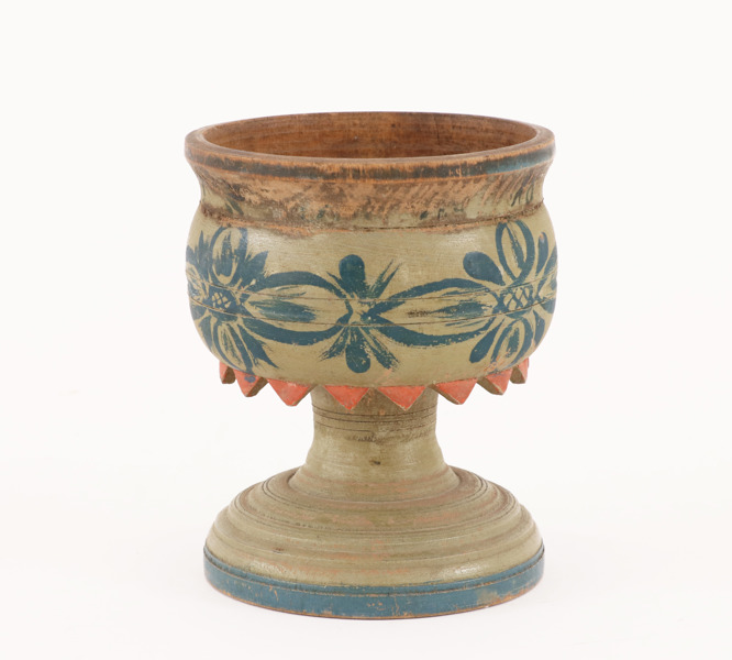 Originalmålning. Med skuren dekor. Med monogram och årtal.
