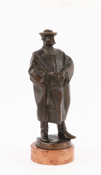 Skulptur i brons, mansfigur. Signerad. Sockel av marmor.